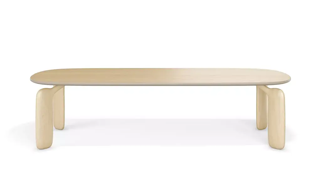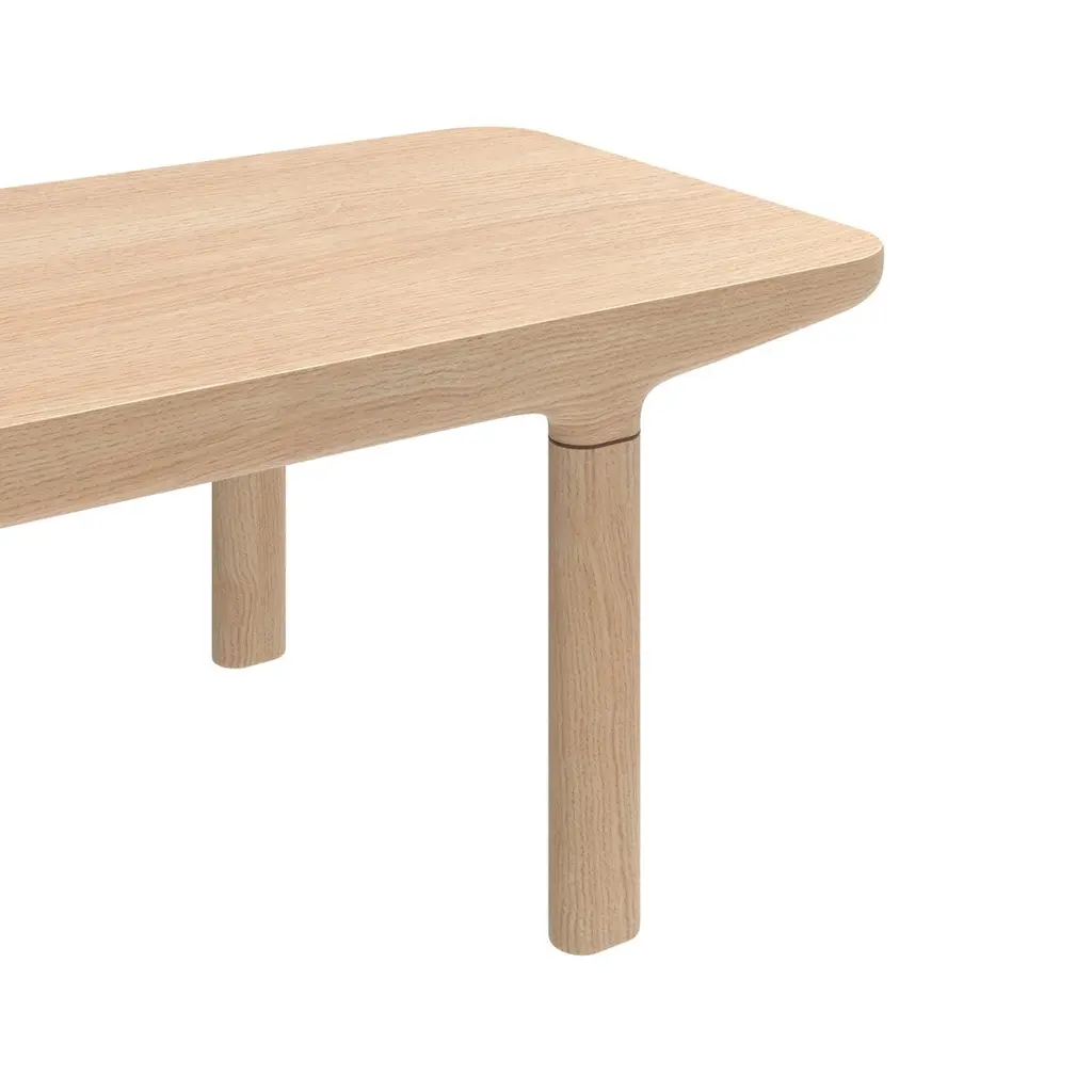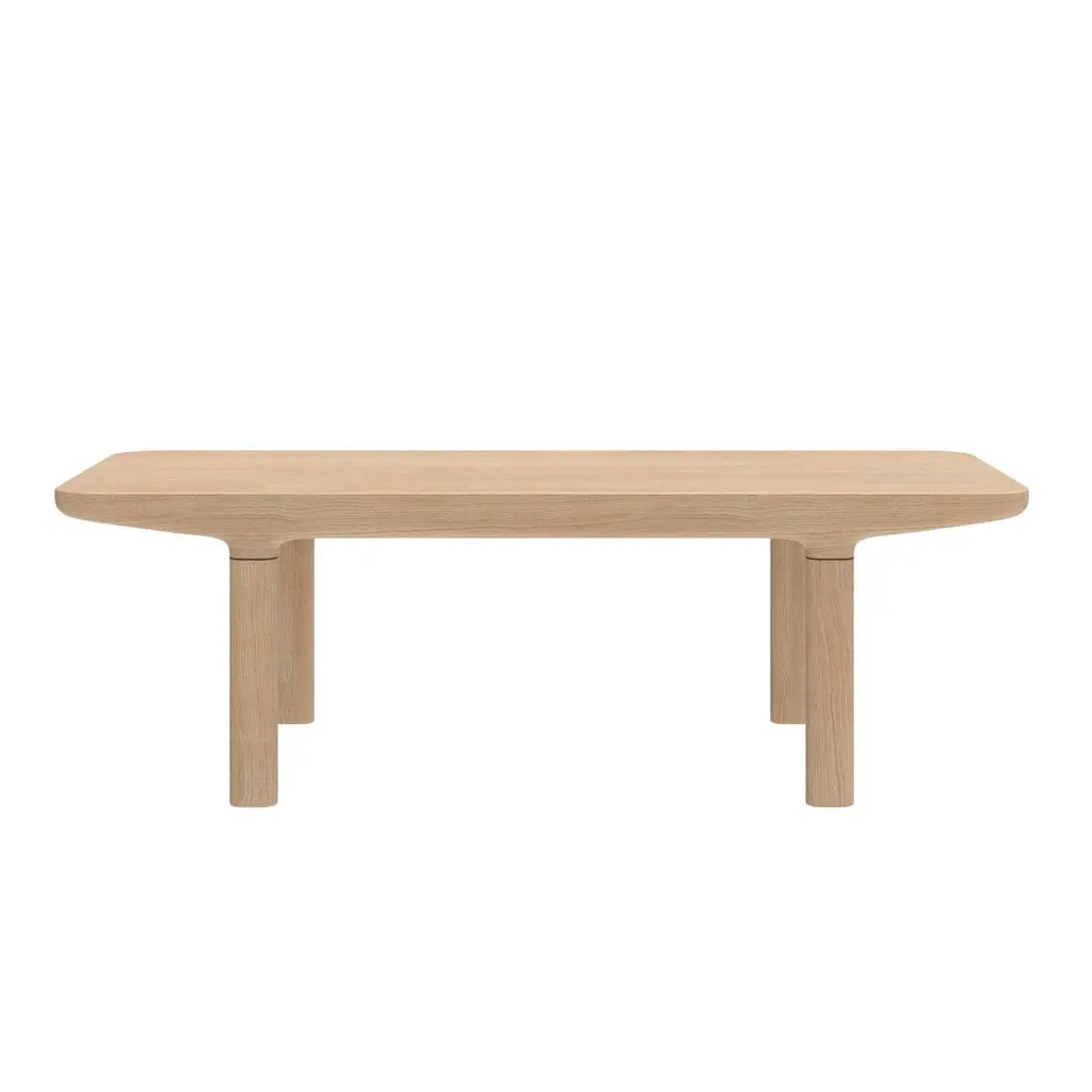 Natural Oak Camille Coffee Table L38 by HARTODimensions: W 120 x D 50 x H 38 cm. Materials: Solid wood, MDF wood veneer. Weight: 8.5 kgBoth massive and light, the Camille coffee tables are born from a very fluid design, their curves follow one another in an obvious harmony that sublimates the material. Alone, in pairs or in threes, these rectangular or almost square coffee tables of different heights can be assembled in varied compositions, to adapt to the spaces of all living rooms. Made in Portugal, the Camille rectangle coffee table 120cm is in natural oak, and each leg is highlighted by an elegant walnut ring. The Camille coffee tables are a creation of Guillaume Delvigne.The Auguste sofa is a creation of Tristan Lohner.About: Hartô, a French furniture brand, was born in 2012 from the desire of its founders to offer a different design, less elitist, which combines the useful with the beautiful. A light, joyful design, as if to say "I'm fed up" (with boring furniture): this is the meaning of the word harto in Spanish. The first pieces of the collection, the desks offer a new vision on a market that was then quite sparse, and offer functional tips and a joyful, colorful design, out of step with the archetypes. The foundations of the Hartô spirit are laid: a free spirit, a design of the useful, curved shapes, colors. In a word: creativity! And of course, from the beginning, this translates into collaborations with talented designers. This spirit crosses the years and the collections, evolves, refines itself, without ever denying itself. Today, audacity and creativity are still there, and are translated in a subtle way, all in elegance. At Hartô, the freedom to create is also based on strong commitments to quality and durability: the furniture is made by the best local craftsmen, who use noble materials to give life to pieces that will last through the ages.