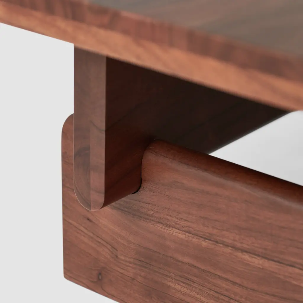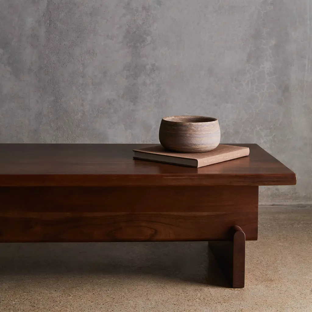 Intersecting beams of rich acacia form the clean lines and sculptural detail of this beautiful coffee table. A museum-worthy sculpture you can set a drink on, this stunning coffee table mixes smooth surfaces, rounded edges, and geometric details that always make a statement. Built from solid FSC-certified acacia wood, each piece features a distinctive grain and deep cocoa finish that makes it truly one of a kind. Handcrafted from solid acacia, each piece is built by a group of artisans in a workshop in Ghaziabad, India. Each piece is sustainably made in a fair trade environment.