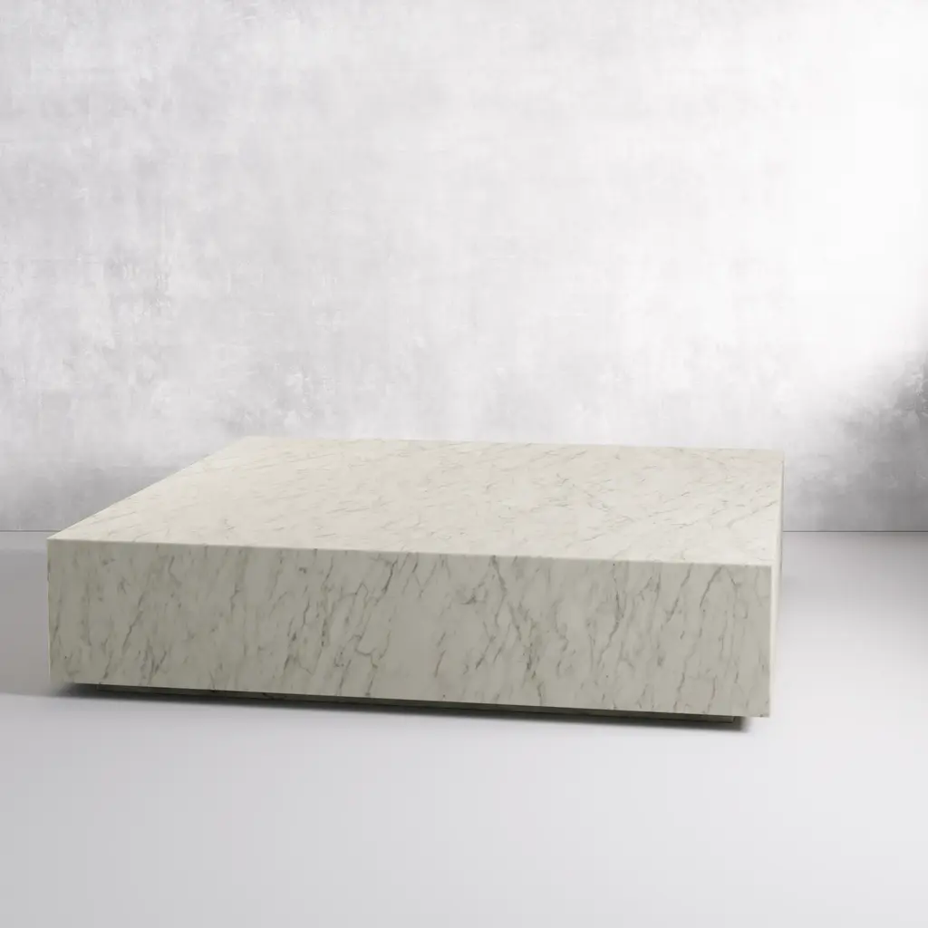 A block of luxury marble sits on top of a low-profile, stainless-steel base. Our Nerva coffee table is named after the Latin word for strength. The heavy, rectangular form will add sleek sophistication to your interior. Place our Nerva coffee table in your living room, lobby, or commercial space for a refined look. Dimensions: 96.0''W x 0.0''D x 12.0''H Tear Sheet