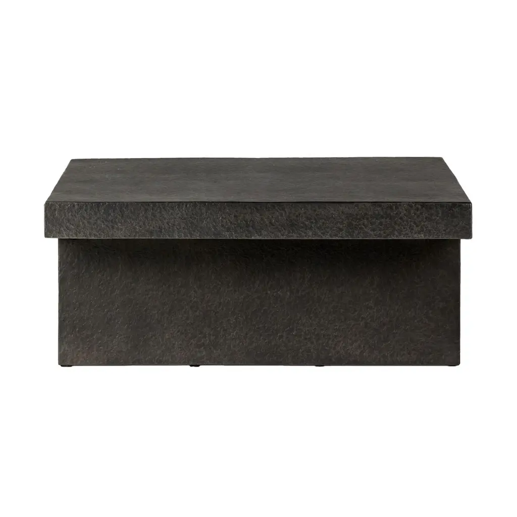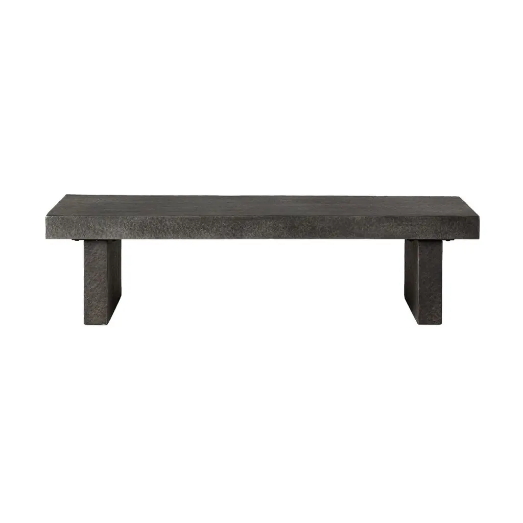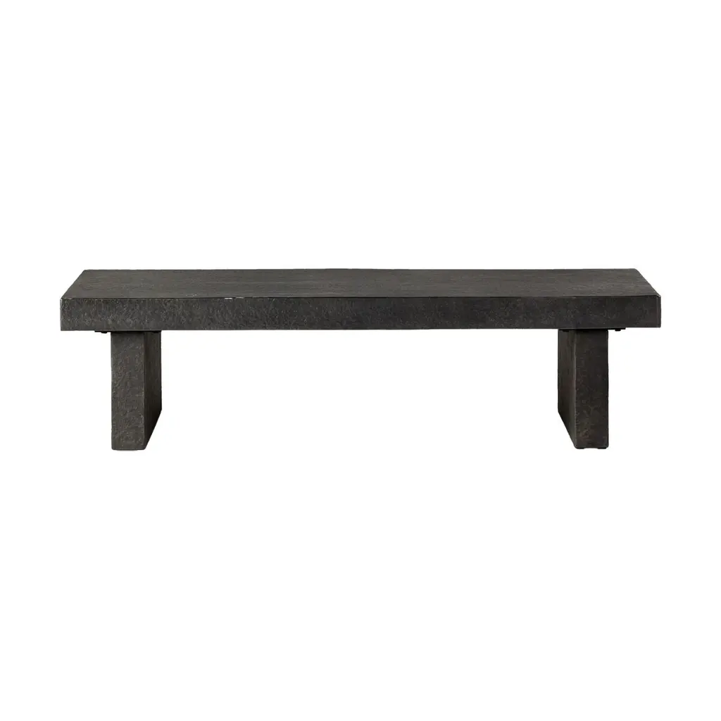 Moody and bold, this coffee table forms a monolithic presence suitable for both indoor and outdoor spaces. Its distinctive texturing elevates the streamlined frame, making it ideal for mixing and matching within your space.