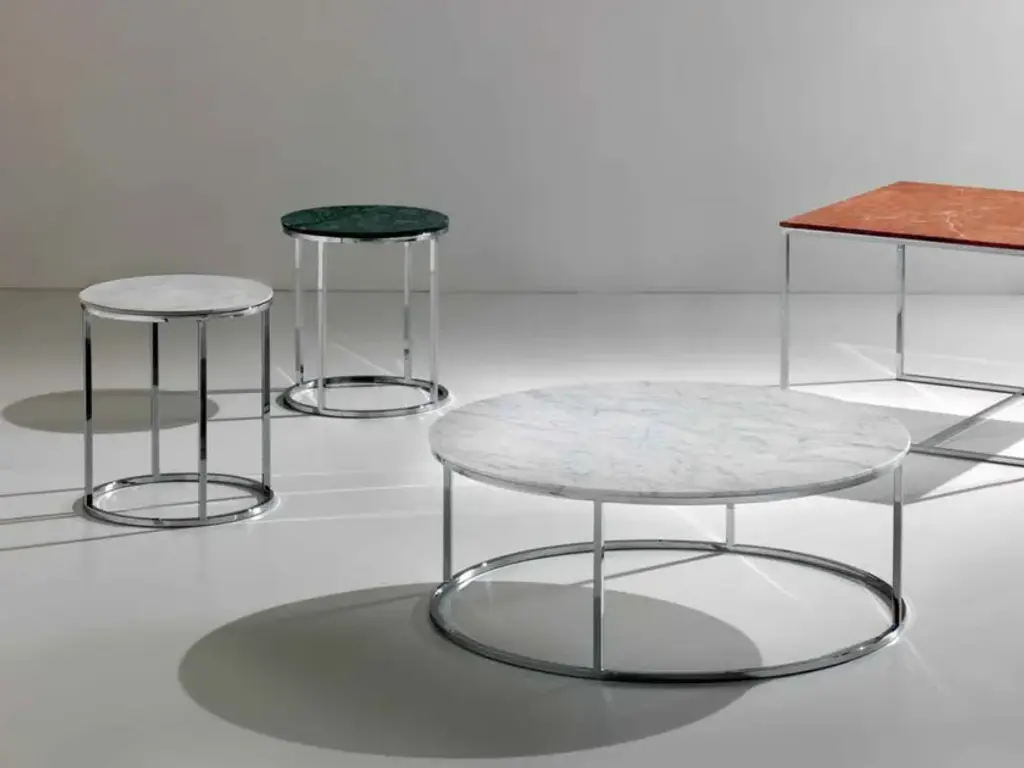 The new air coffee table with stone top or wood top is an elegant modem coffee table, pairing a combination of natural stone or wood and metal foot finishes. A light airy design to showcase in your living room.Available in a number of different materials, finishes and combinations.MaterialMarble Top : estremoz white, estremoz pink, nero marquina,Wood Top : oak, walnut or wenge veneerBase : plated brass, copper or lacquered black air White metalDimensionsØ 35 x H 12” - with brass or copper baseØ 39” x H 12” - with black or white metal base.