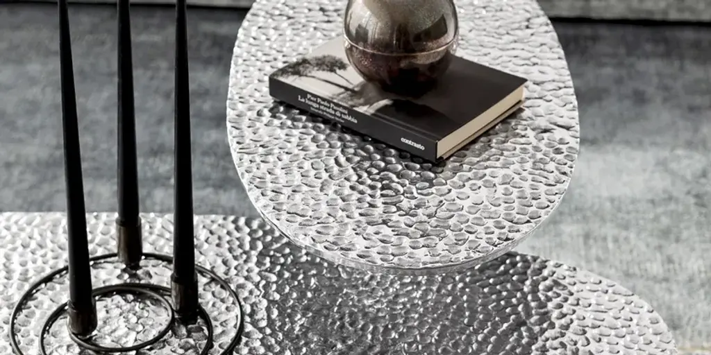 Next 147/148 is the coffee table in cast polished aluminium. Hammered top.