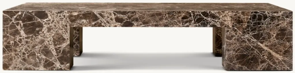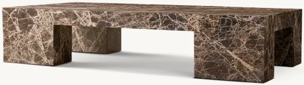 1970s Postmodernism inspired the heroic proportions and expansive planes of our table. Handcrafted of honed stone, it features cutout legs that lend lightness to the geometric design. Natural variations in color and veining highlight the unique beauty of each piece. SHOP THE ENTIRE COLLECTION