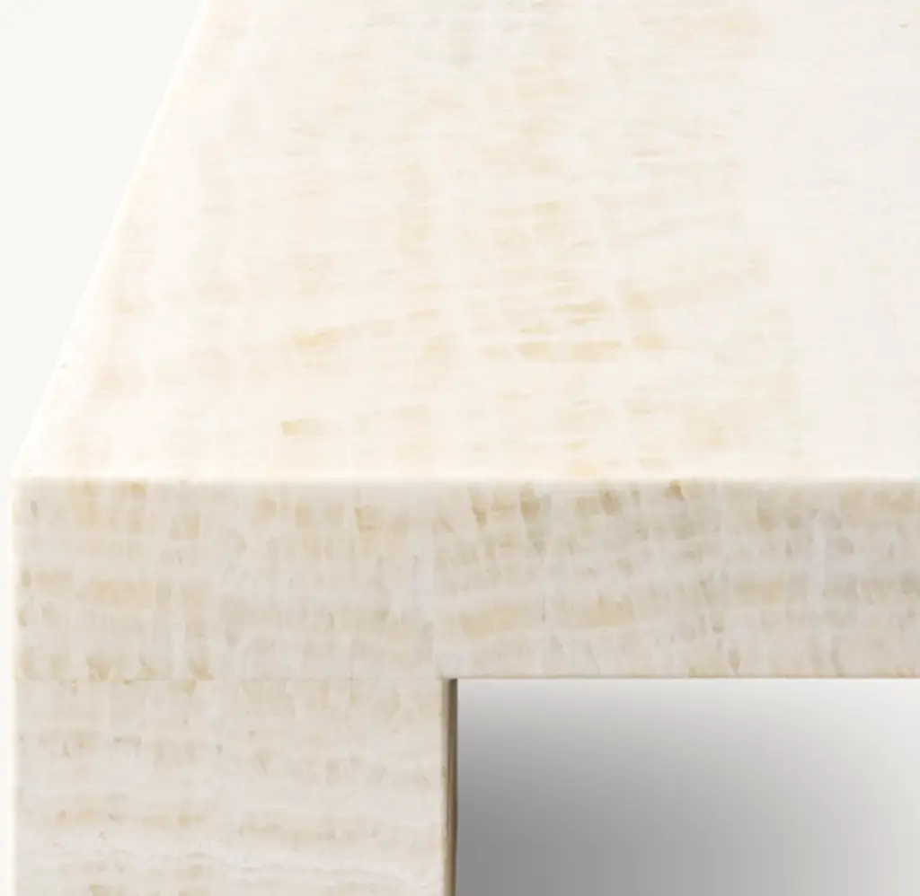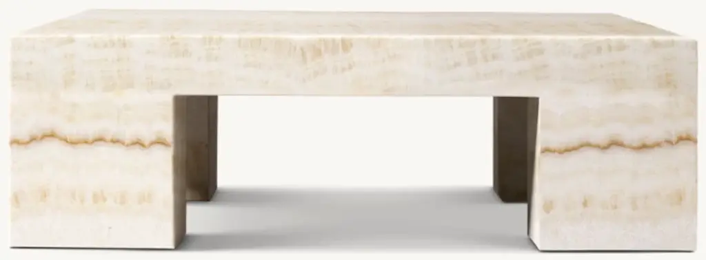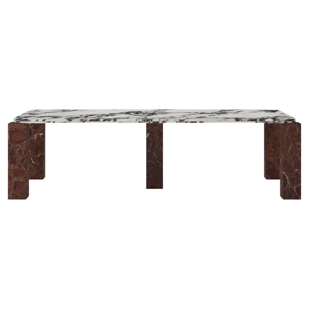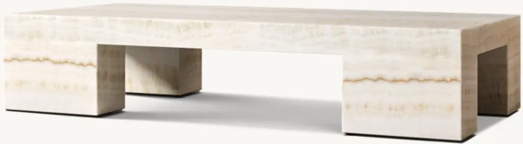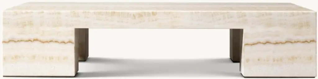 1970s Postmodernism inspired the heroic proportions and expansive planes of our table. Handcrafted of honed stone, it features cutout legs that lend lightness to the geometric design. Natural variations in color and veining highlight the unique beauty of each piece. SHOP THE ENTIRE COLLECTION