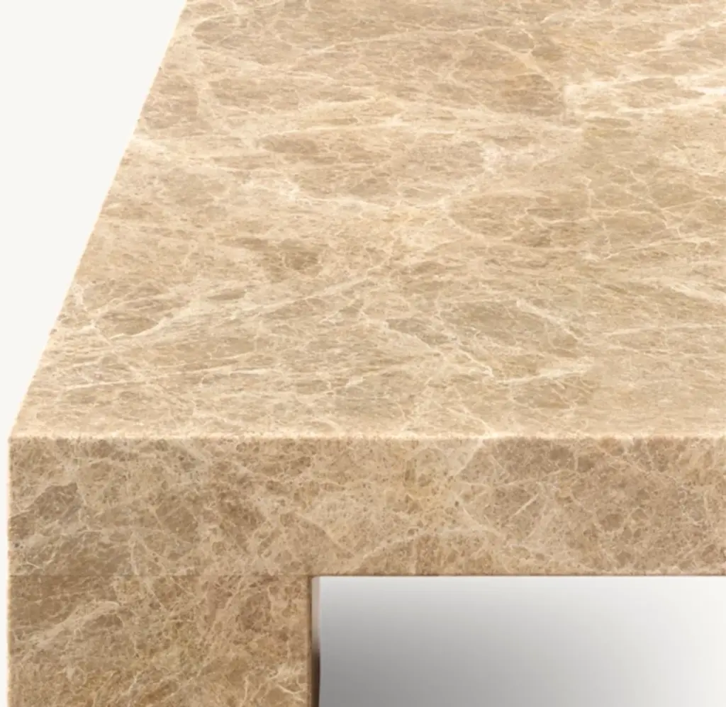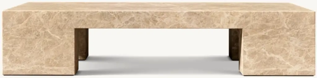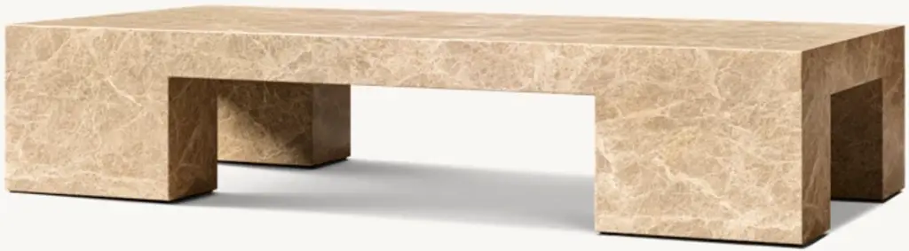 1970s Postmodernism inspired the heroic proportions and expansive planes of our table. Handcrafted of honed stone, it features cutout legs that lend lightness to the geometric design. Natural variations in color and veining highlight the unique beauty of each piece. SHOP THE ENTIRE COLLECTION