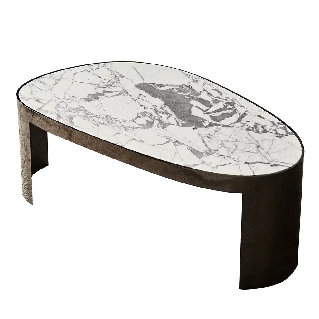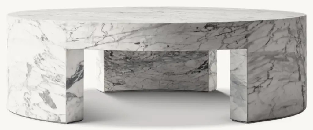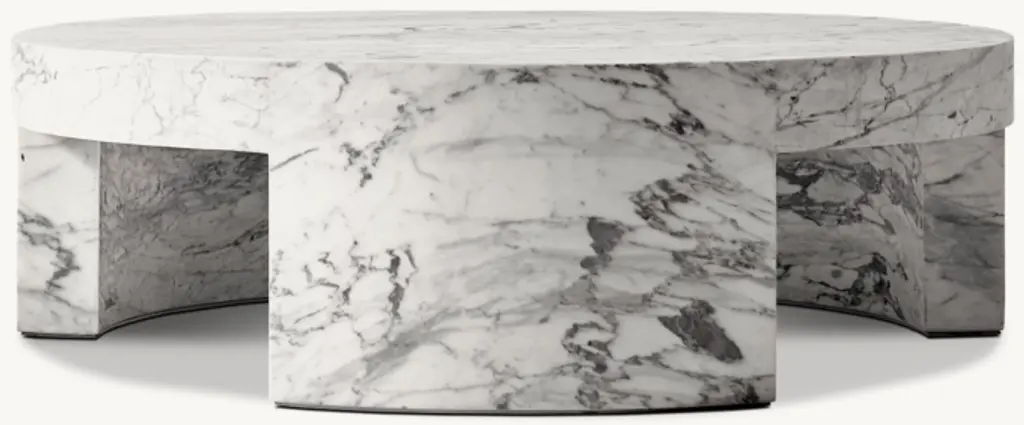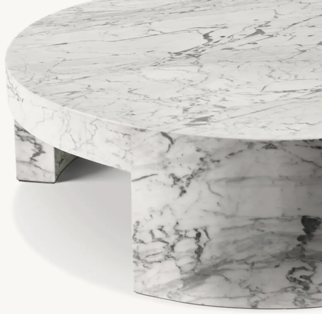 1970s Postmodernism inspired the heroic proportions and expansive planes of our table. Handcrafted of honed stone, it features cutout legs that lend lightness to the geometric design. Natural variations in color and veining highlight the unique beauty of each piece. SHOP THE ENTIRE COLLECTION