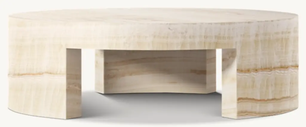 1970s Postmodernism inspired the heroic proportions and expansive planes of our table. Handcrafted of honed stone, it features cutout legs that lend lightness to the geometric design. Natural variations in color and veining highlight the unique beauty of each piece. SHOP THE ENTIRE COLLECTION
