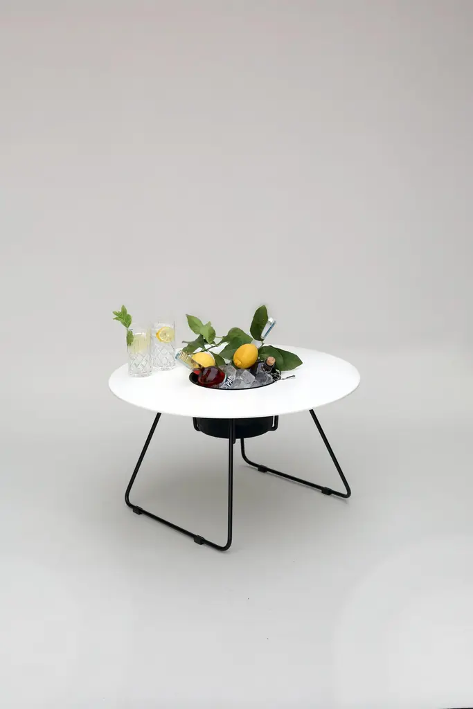 N'ice cocktail table by Cools CollectionMaterials: Steel, paint, aluminium.Dimensions: Table: Ø 75 x H 42 cm. Bucket: Bucket: Ø 26 x H 16 cm.Available in black or white table top.COOLS Collection was launched in 2020 by mother-and-daughter duo Stefania Andorlini and Maria Francesca Staehle, who together decided to start a new adventure and build a brand capturing their joint aesthetic expression and spirit. A joint vision of casual elegance and timeless simplicity characterizes their brand and collection.COOLS are Contemporary Object Of Love, making you want to have them around for a lifetime.We work together with local and specialised artisans across Europe. Our products are made in small batches, from high quality and sustainable materials. Either in form of recycled or long-lasting and recyclable materials, such as steel and aluminum, both endlessly reclaimable and reshapable. We believe in lasting, meaningful design. Design that is self-evident and essential, transcending context and time. We love design that is simultaneously casual, intuitive, humorous and chic. We believe in treasuring what we love. Our designs are: Intentionally casual.Likeable and resonating, with a touch humour.Distinctive, smart and surprising.Consciously balancing function and aesthetics.Timeless, contemporary, to treasure and love for years to come.