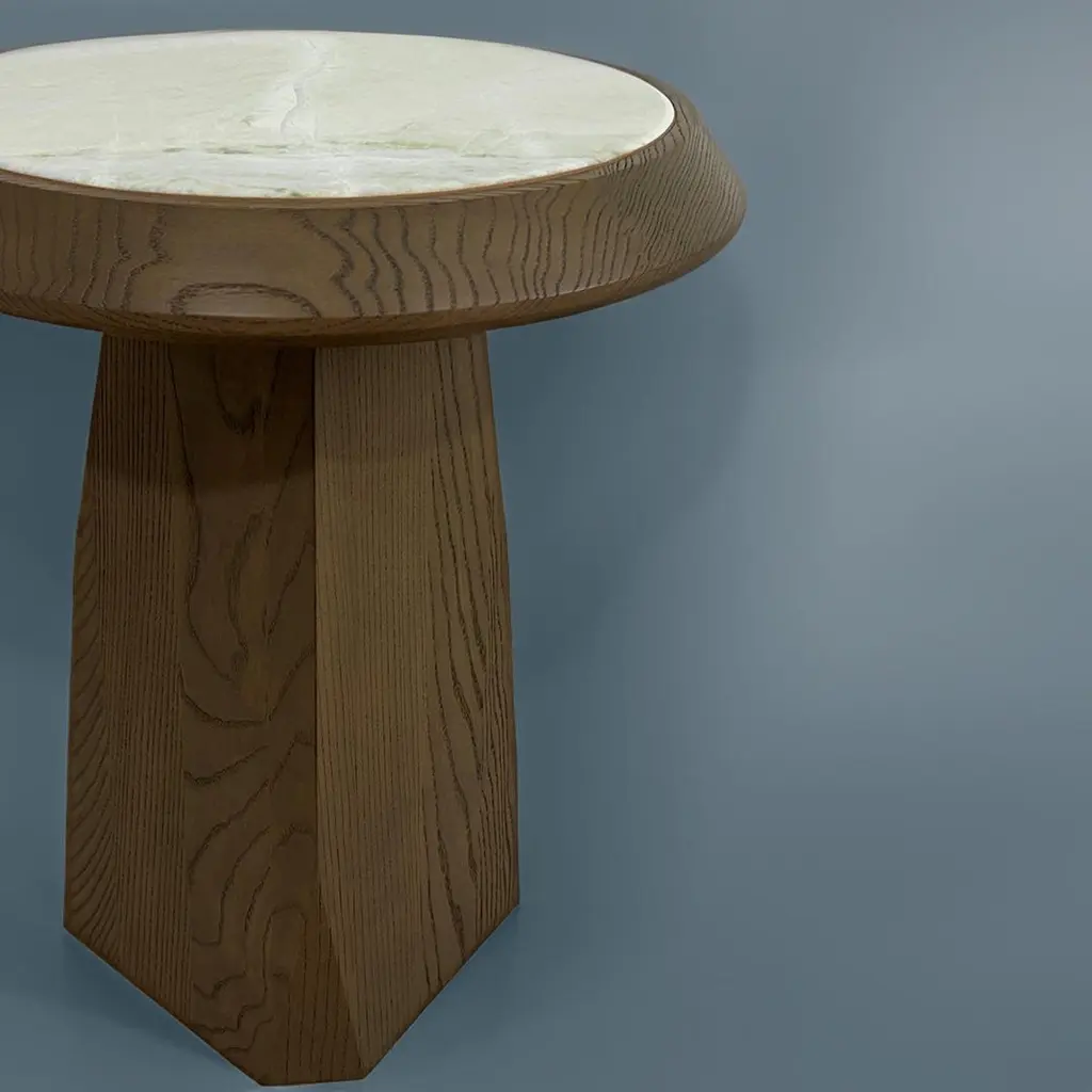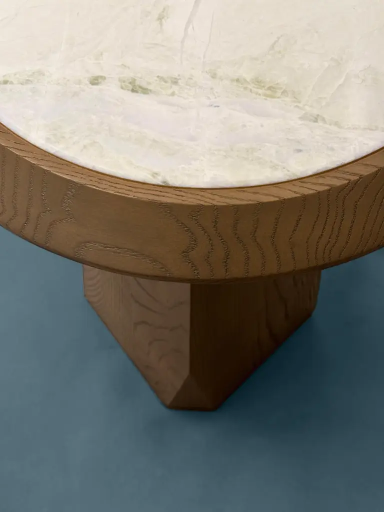 drawing inspiration from the majestic mountains of niseko, the niseko high coffee table captures the essence of natural beauty. crafted with mutiple chamfered facets, this exquisite table showcases a precious jade green marble top elegantly paired with a solid ash timber base, creating a harmonious blend of sophistication and architectural charm.