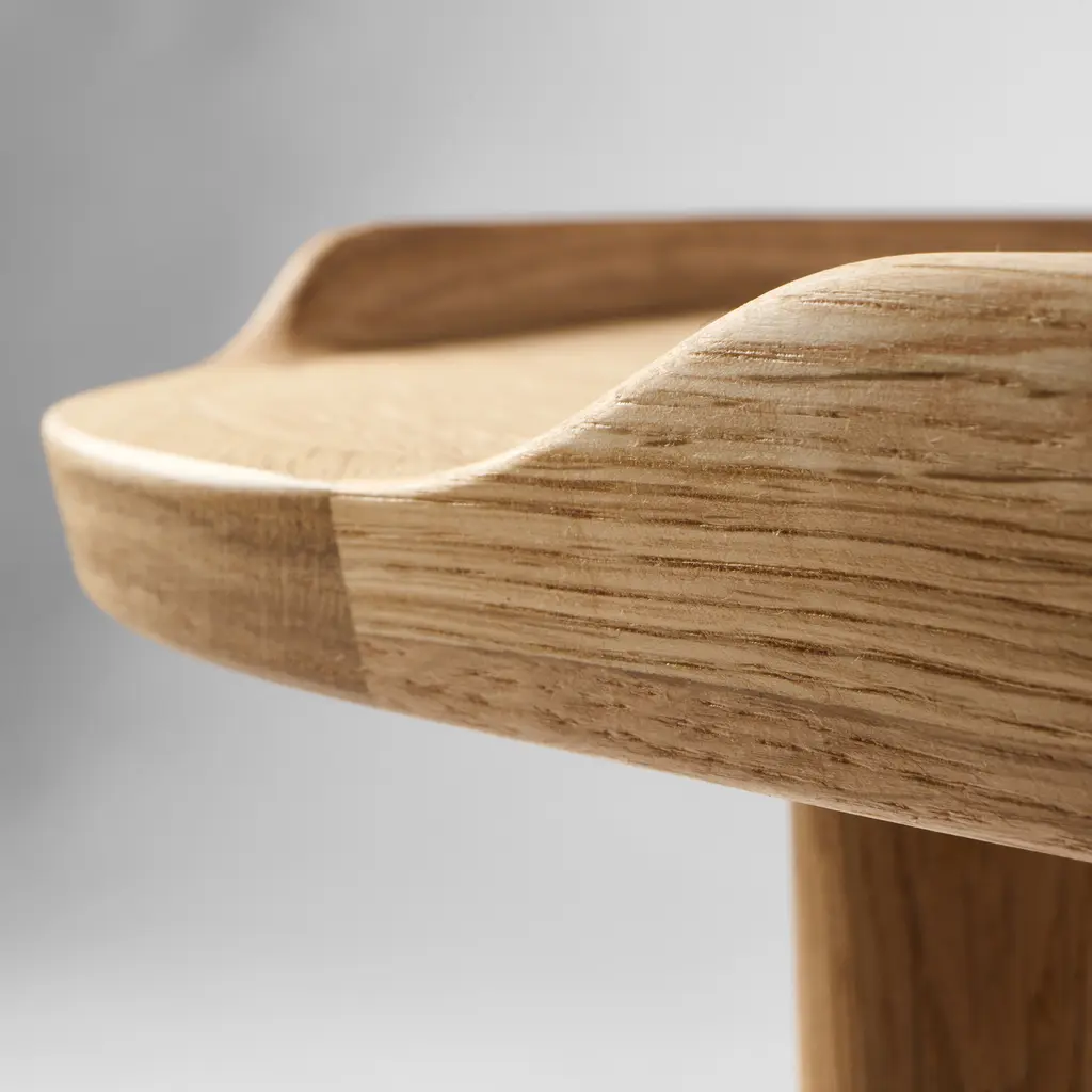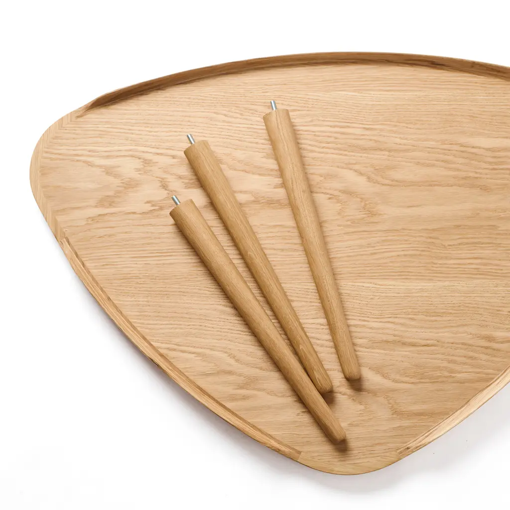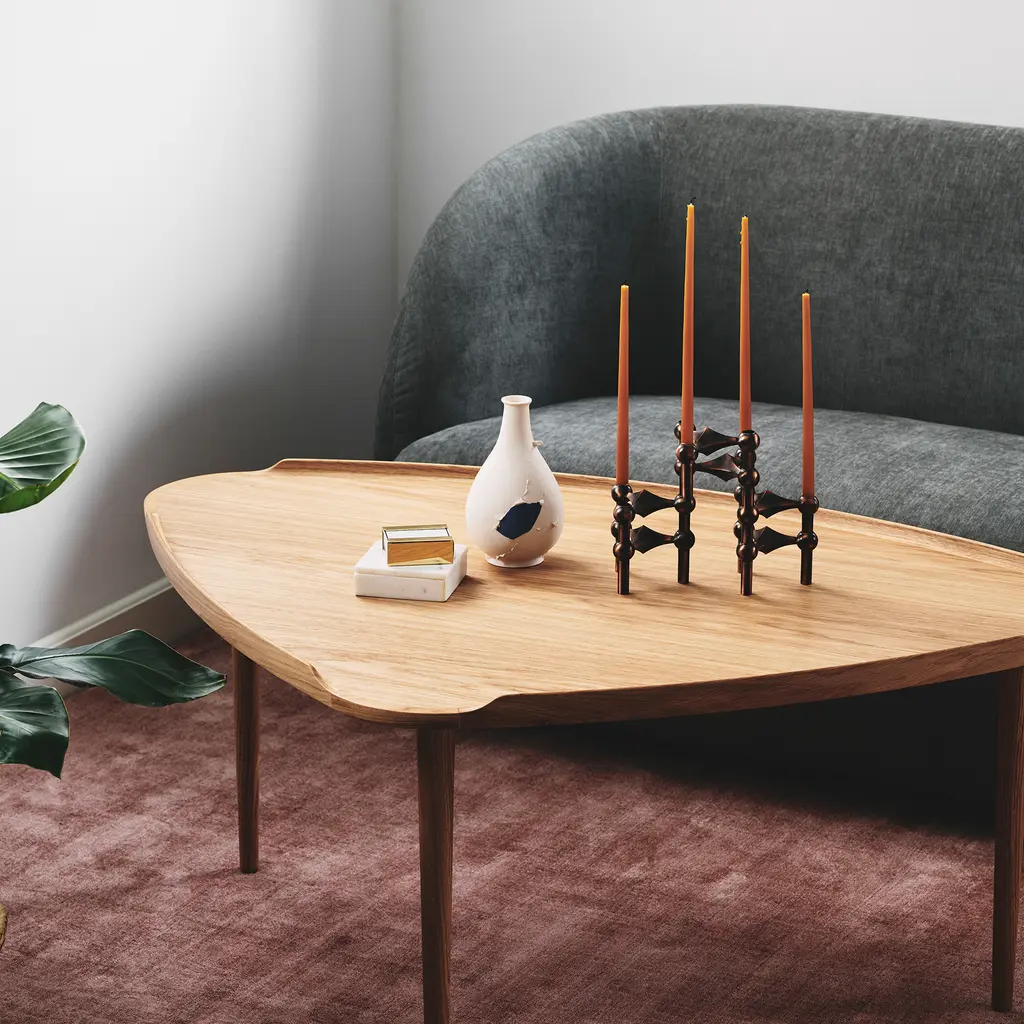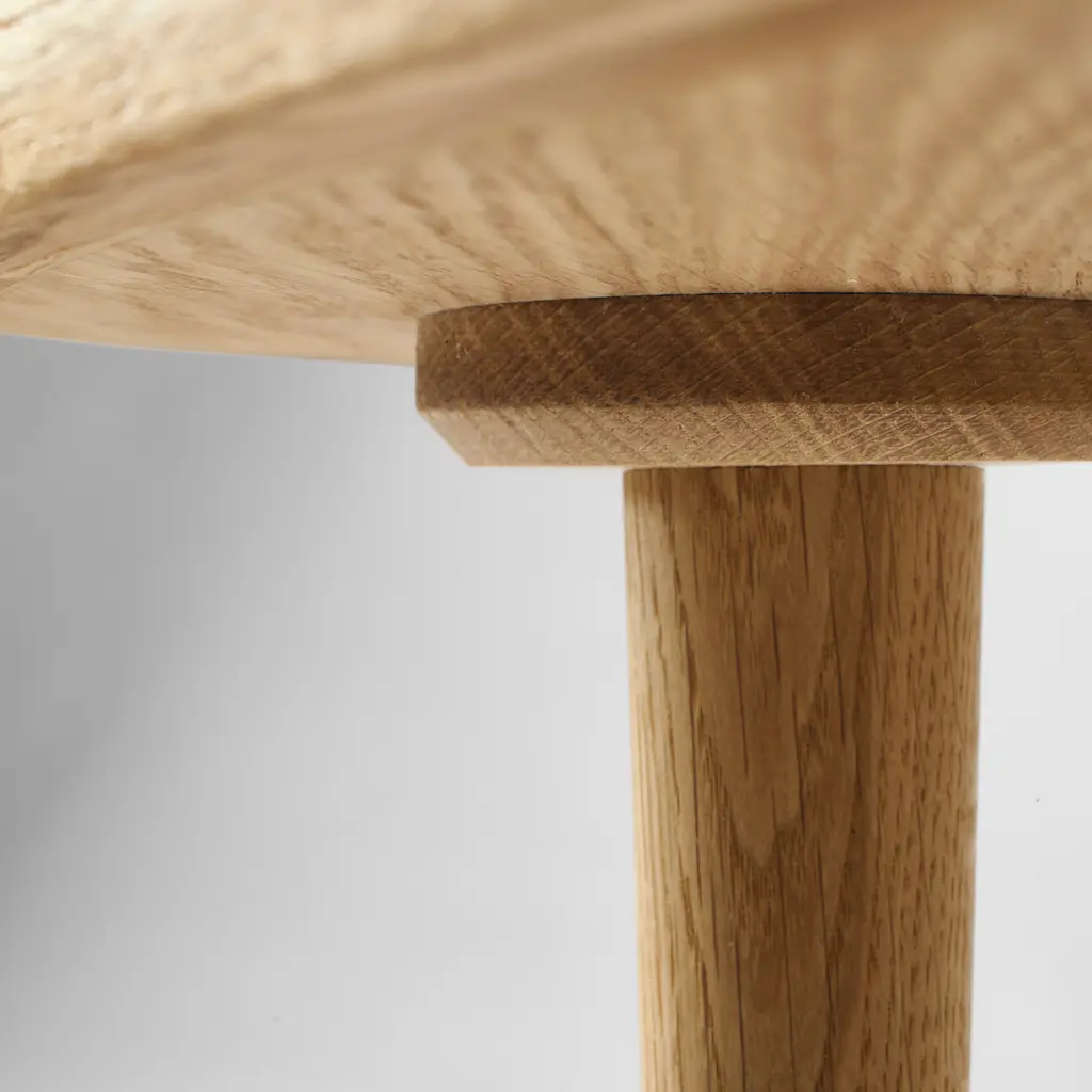 Petals, leaves, a guitar pick. Regardless of what its silhouette reminds you of, the No. 55 Table has a distinctive style that brings charm and timeless Danish elegance into your home. Designed in the 1950s by Jørgen Aakjær Jørgensen, this Intarsia Furniture table was relaunched in two versions that perfectly suit modern interiors. Available in two sizes and two heights, the No. 55 tables can be nested in a living room to save space. Both versions feature a triangular top with curved corners and a traditional chamfered edge. Three tubular but slim legs provide excellent support while giving a light look to this versatile coffee table. Available in natural, white oiled or smoked oak versions, the Intarsia Furniture No. 55 Table blends into any décor with ease.