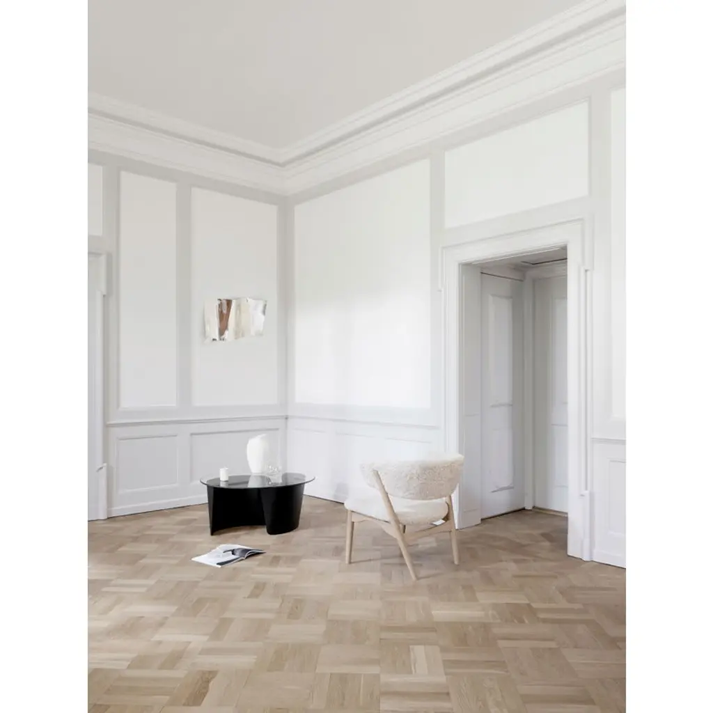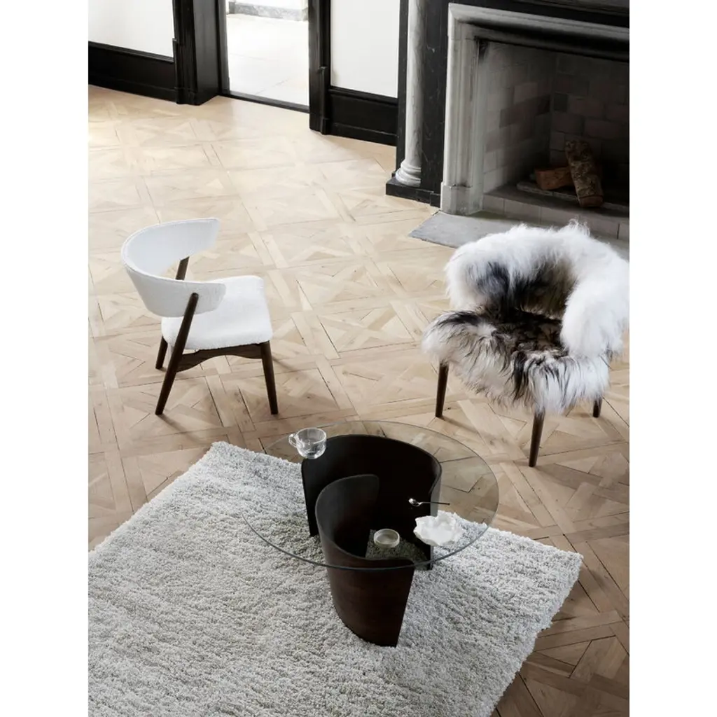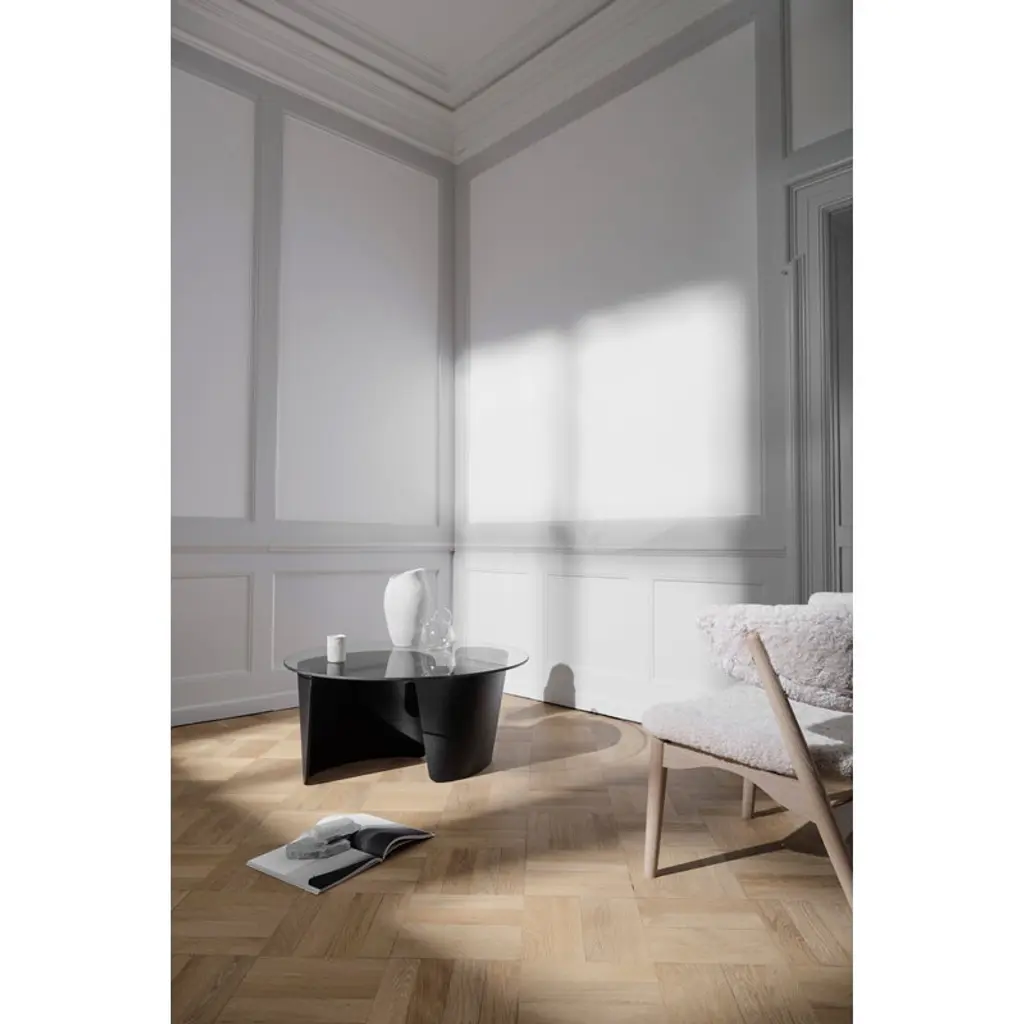 The Sibast No 7 Lounge table comprises a glass top carried by a base of two curved shapes. The coffee table borrows its organic form from Helge Sibast’s No 7 chair from 1953: the table's frame is made using the same mold as the chair's signature arched backrest. As a finishing touch, the perfectly round glass top is transparent, emphasizing the dynamic shape of the base. The coffee table is designed by Helge Sibast’s grandson Ditlev and his wife Anna Sibast.
