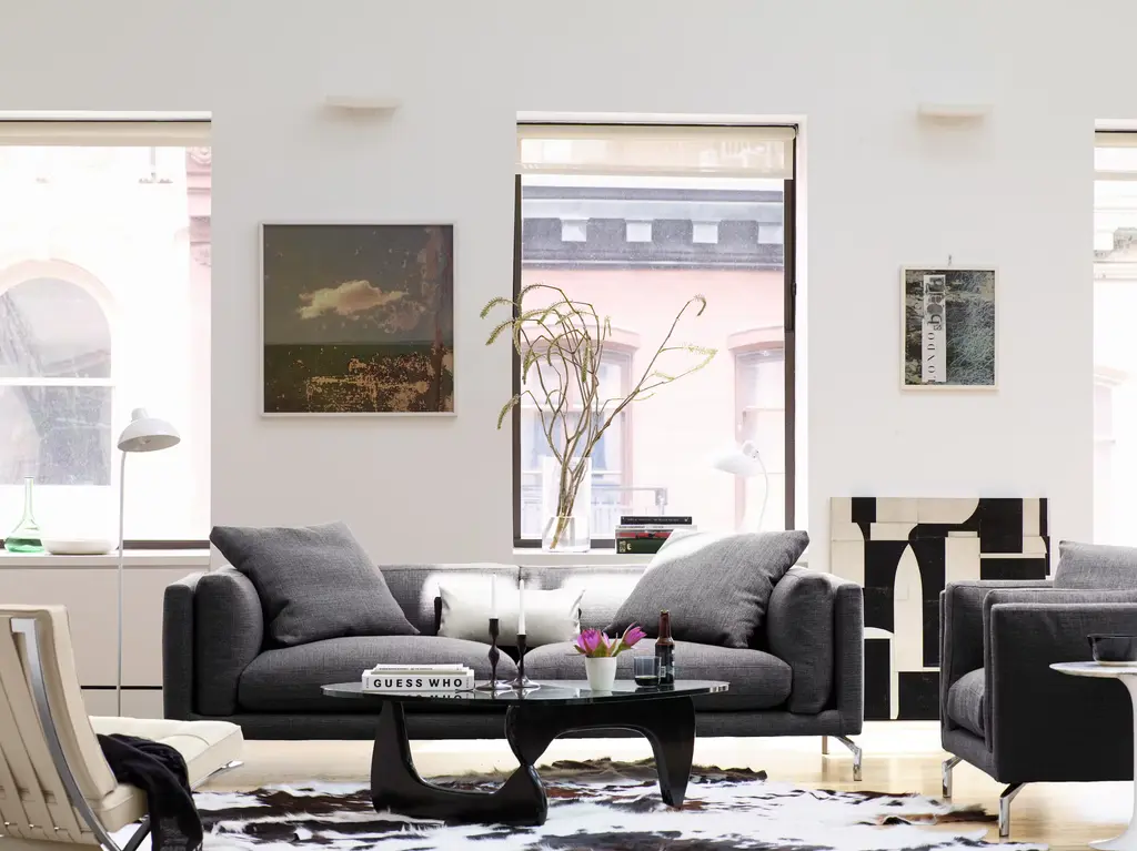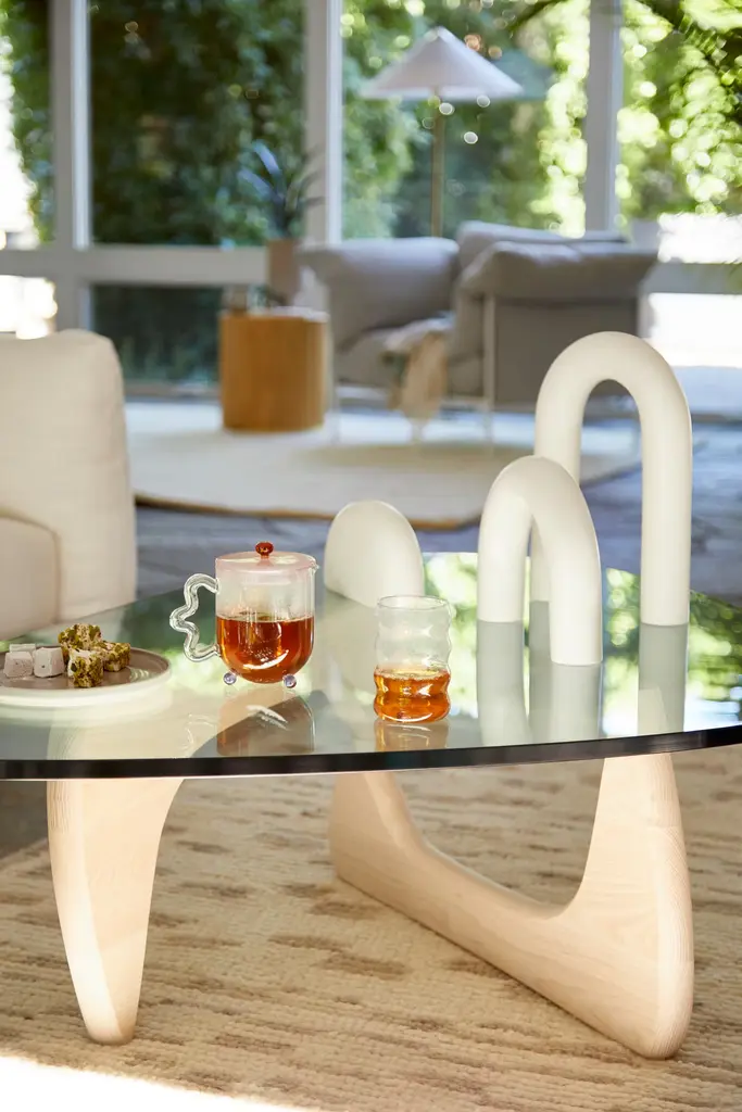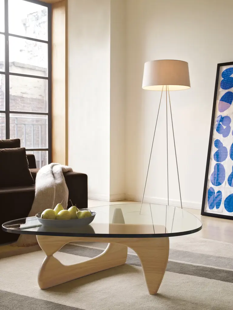 Following his apprenticeship with the legendary Constantin Brancusi, sculptor Isamu Noguchi began to experiment in environmental design, theatrical sets - he was the only designer that choreographer Martha Graham would work with - and, eventually, product design. He created his first furniture prototypes for Herman Miller in 1942 and went on to work with companies such as Steuben and Zenith. The Noguchi Table (1948) conceals nothing, revealing everything about the nature of simplicity. Two smoothly shaped pieces of solid wood interlock to form a tripod that supports a thick glass tabletop. The base is available in black, walnut, white oak, and white ash, the latter of which is finished with a process that arrests the wood in its freshly cut state, resulting in a creamy white color that will not turn yellow over time. This is the authentic Noguchi Table by Herman Miller. A stamp of authenticity. To signify its authenticity, this table etched with Noguchi's signature in two places: on the longest edge of the glass tabletop and on a medallion underneath the base. It also holds a registered trademark for its unique configuration.