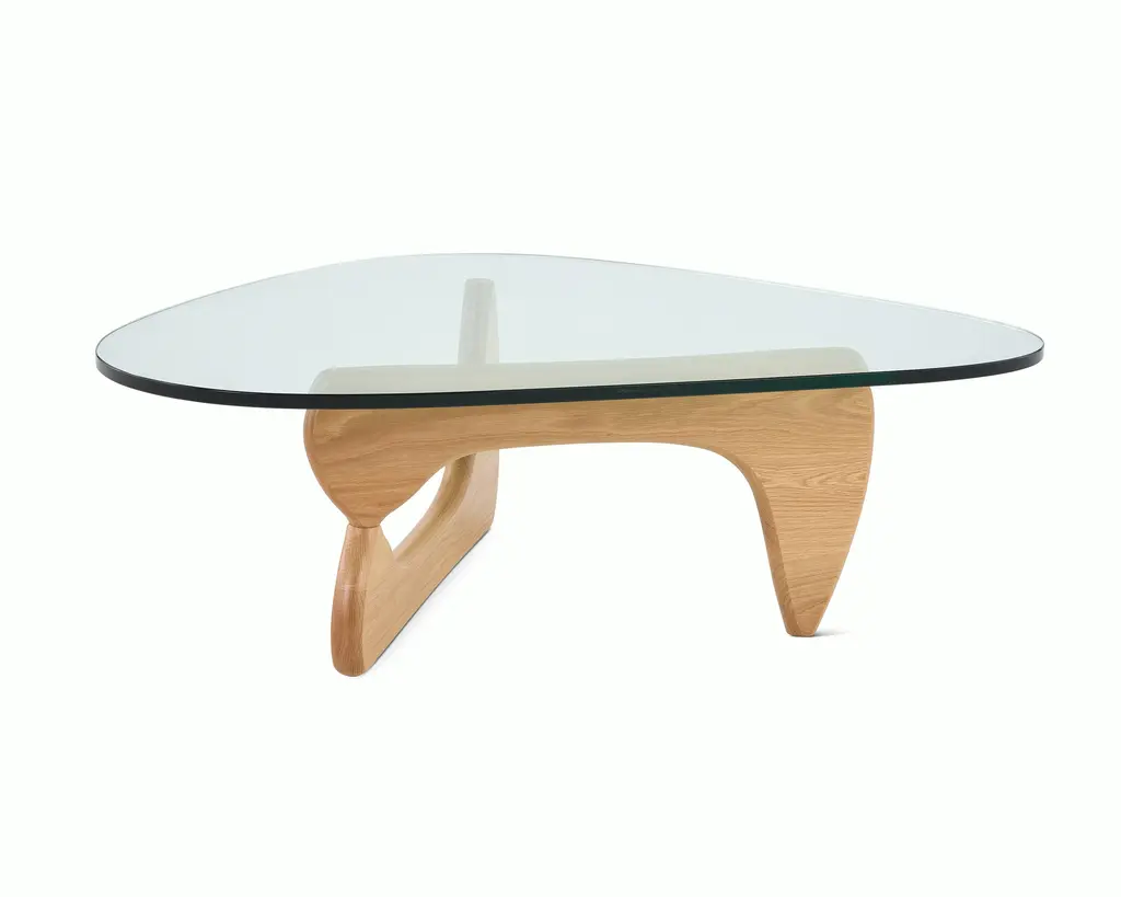 The original Noguchi Table balances delicacy with sturdy, solid-wood construction in an understated yet unforgettable icon. The signature interlocking wood base offers a fresh perspective from every angle while the thick glass-top is made to withstand everyday wear and tear. Designed in 1948 by sculptor Isamu Noguchi, this table is still coveted today because of its generous and playful curvaceous lines, which catch the eye and invite interaction. To signify its authenticity, each Noguchi coffee table is etched with his signature on the table's edge and base.