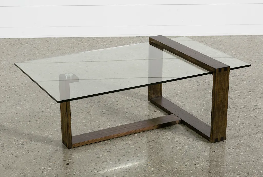 Nola Brown 48" Wide Rectangle Glass Top & Wood Base Coffee Table | Mindi