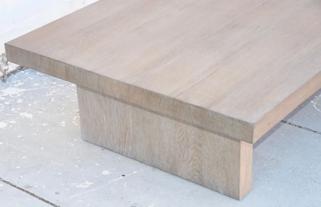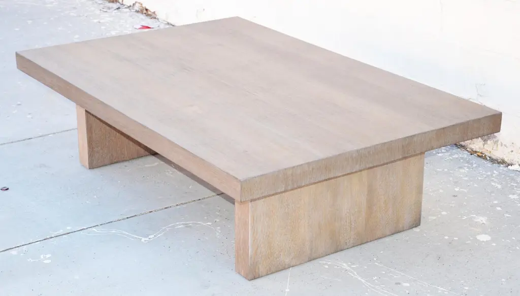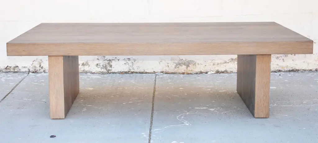 This rift sawn oak coffee table is seen here in 38" x 54" x 17" H with 3" legs and table top, however it can be built in any size. Each table is bench-made in our Los Angeles workshop using traditional traditional carpentry techniques, no nails or metal fasteners of any kind, just mortise and tenon construction reinforced with hand-cut wooden dowels. Because each table is made to order you can influence all aspects of design, including size, wood species and finish.