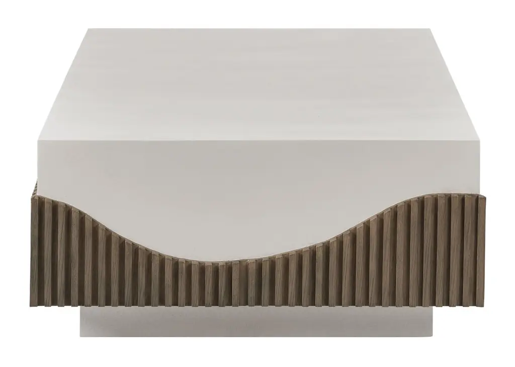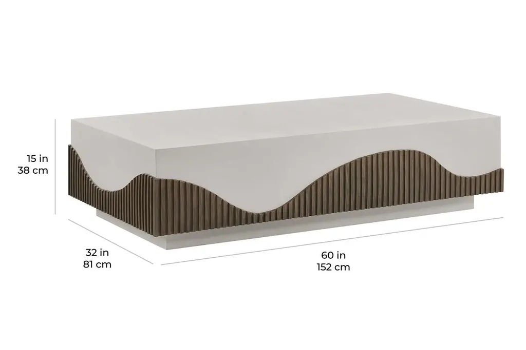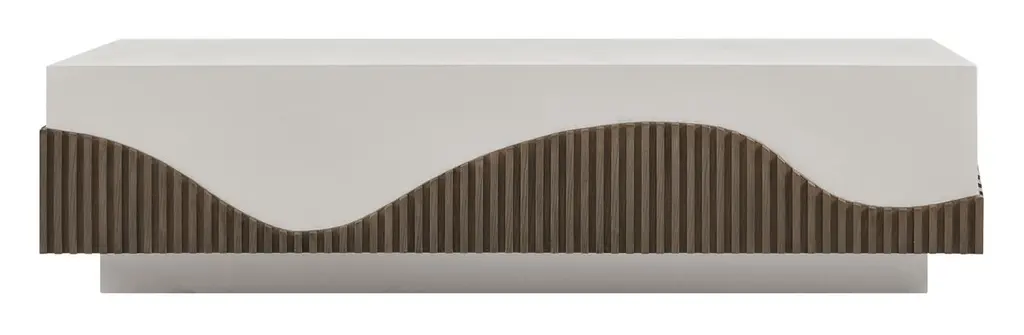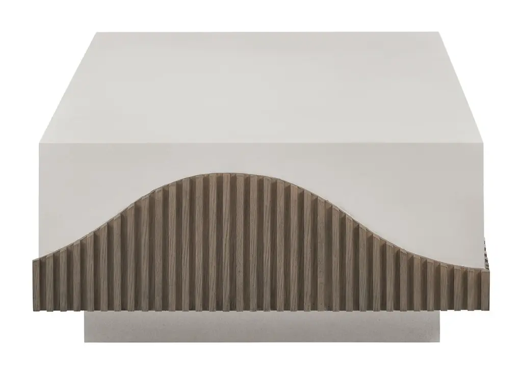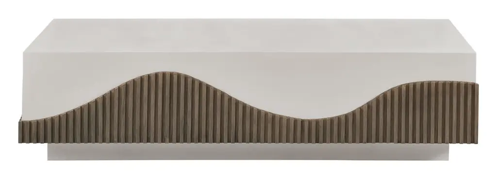 Whether you use it indoors or out, this coffee table is certain to be a focal point. The juxtaposition of sharp lines and fluid curves, smooth and ribbed surfaces, makes it as much a work of art as a functional piece of furniture. The powder-coated steel core ensures durability. Adjustable nylon glides on the bottom will help protect your flooring.