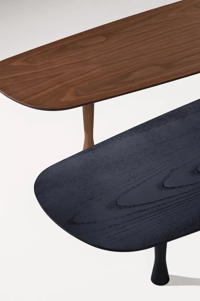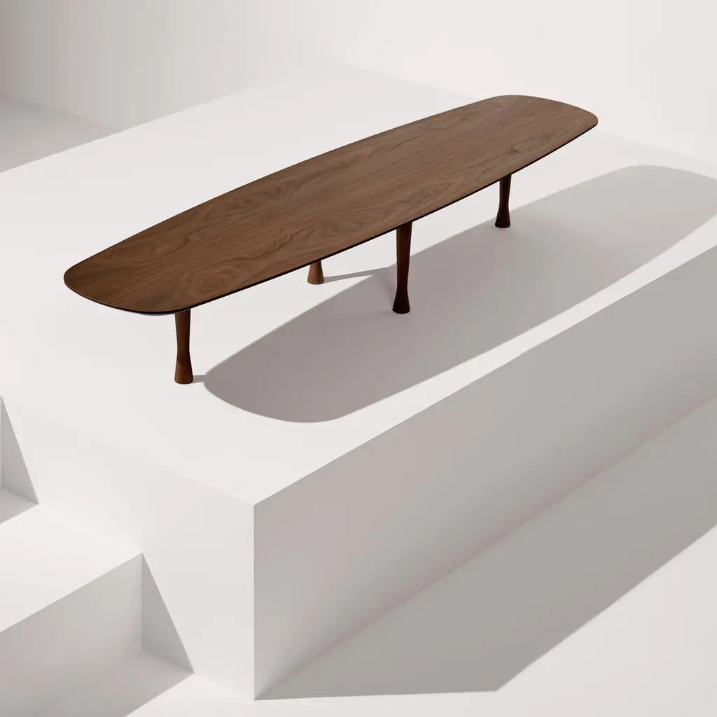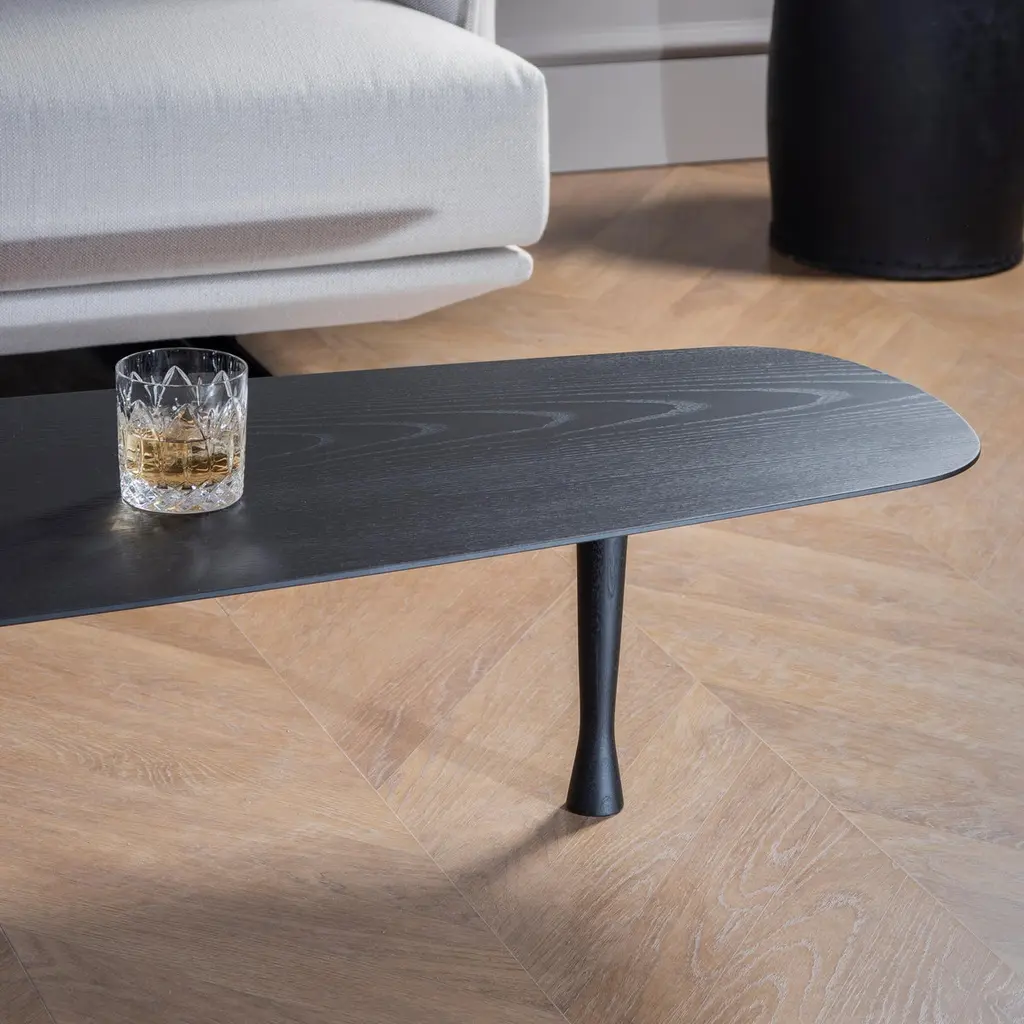Long Coffee Table in Walnut. Surprising by long proportions and the layout of its walnut legs in diamond-shape.Available in: WalnutBlack Stained Ash