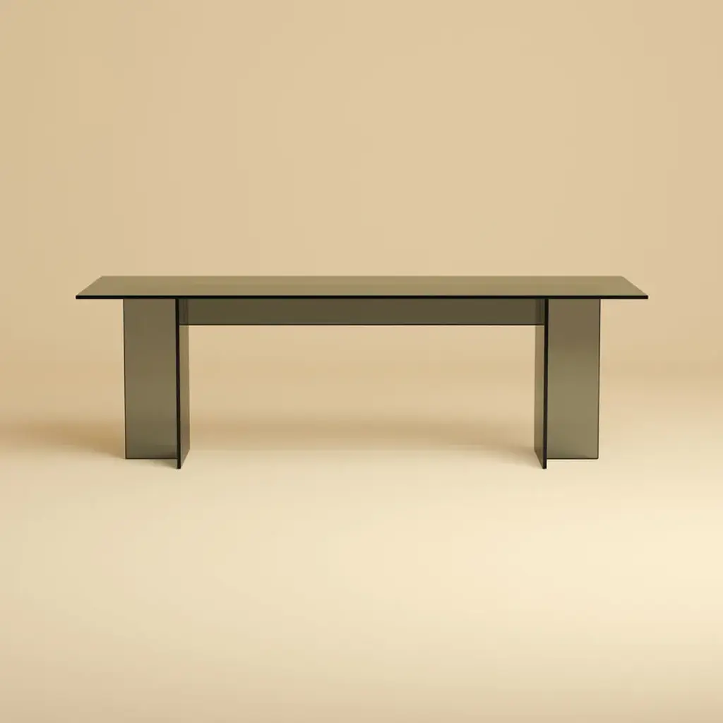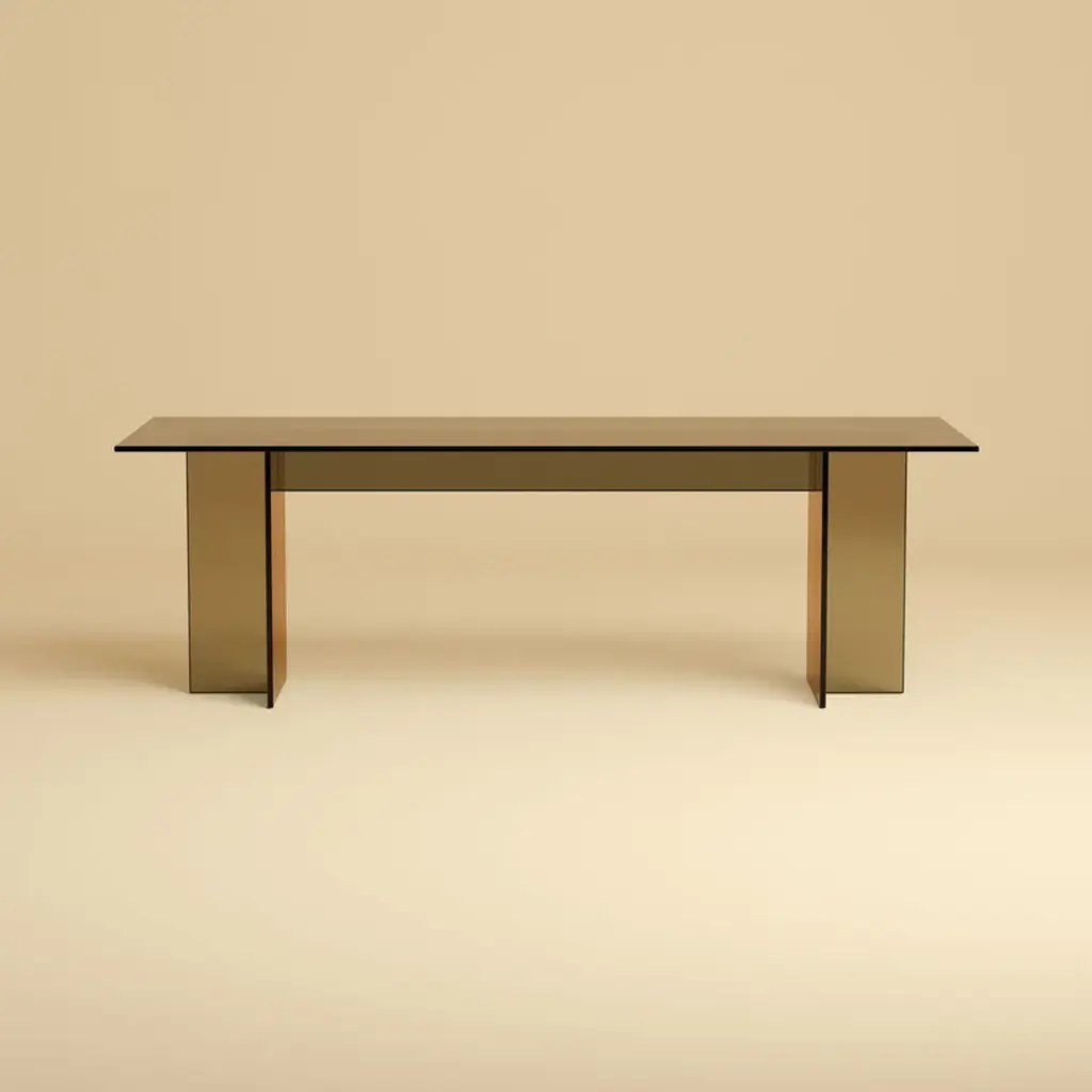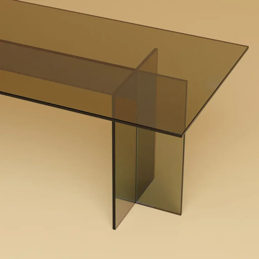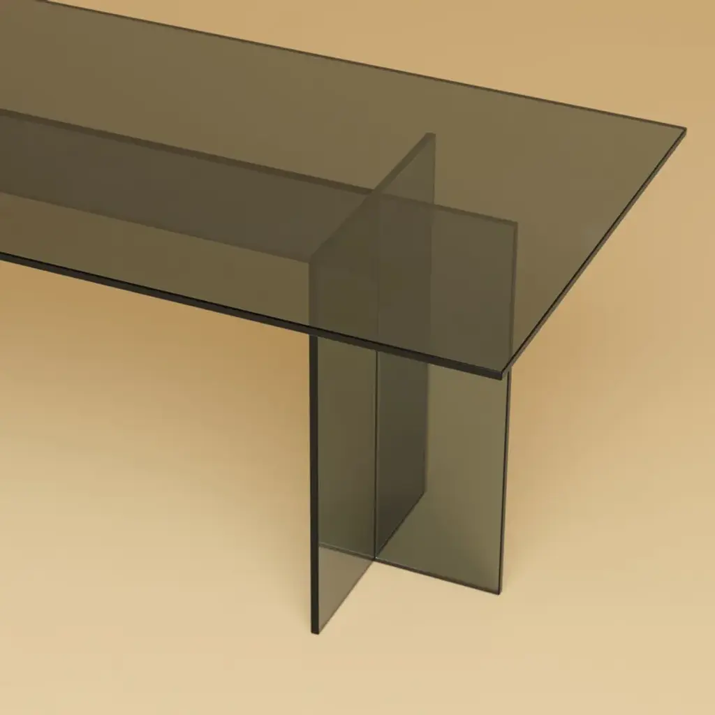 Noor is a sleek and modern rectangular lounge table, crafted from premium glass with bronzed or smoked finish. This luxurious creation embodies contemporary Italian design, adding a refined touch to any space. Its minimalist lines and reflective surfaces create a sophisticated ambiance, making it the perfect centerpiece. Handcrafted with precision, the Noor offers a unique blend of elegance and functionality. The bronzed glass finish provides a warm, rich tone, while the smoked glass option delivers a cool, modern vibe. Both finishes are designed to complement a wide range of interior styles, from modern to industrial, offering flexibility in design while elevating the overall aesthetic of your space.