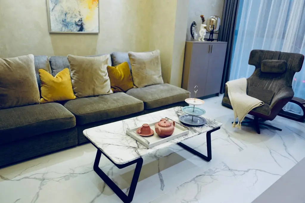 ๐ฃ๐ฟ๐ผ๐ฑ๐๐ฐ๐ ๐๐ฒ๐๐ฎ๐ถ๐น๐:NORDST JERRY Coffee Table from Italian Green Lightning Marble, Danish Modern Design, NewSkilled work in the creation of this collection characterised by the bending technic of the frame instead of the regular welding. Furthermore, the corners of the tabletop have been cut in a rounder way to be in synchrony with the overall curvy design.๐ง๐ฟ๐ฎ๐ฑ๐ถ๐๐ถ๐ผ๐ป๐ฎ๐น ๐๐ฒ๐๐ถ๐ด๐ป:NORDST is a Danish company that's been producing quality marble furniture for customers all over the world for many years. The focus has always been to use beautiful stones in a contemporary design setting. NORDST is also a major furniture player producing for several renowned scandinavian brands, which is also why we have our own manufacturing base in China, where we will ship out from.๐๐ฒ๐ ๐๐ฒ๐ฎ๐๐๐ฟ๐ฒ๐:โ The collection showcases skilled work with a distinctive bending technique for the frame, setting it apart from regular welding.โ The overall curvy design is a key feature, creating a cohesive and visually appealing aesthetic.โ Corners of the tabletop are intricately cut in a rounder way, enhancing the synchrony with the curvaceous design.โ The rounded tabletop corners contribute to the overall harmony of the collection's design, showcasing attention to detail.โ The bending technique and rounded tabletop corners combine for a distinctive and elegant look.โ Each element, from the frame construction to the tabletop, is crafted with precision, reflecting thoughtful design.๐ ๐ฎ๐ฟ๐ฏ๐น๐ฒ ๐ฆ๐ฝ๐ฒ๐ฐ๐:โ 1.7cm thicknessโ Reversed beveled edgeโ High gloss finish enhances the visual appeal๐๐ฟ๐ฎ๐บ๐ฒ: โ Chamfer edge design adds a touch of sophisticationโ Special metal plating finish on steel framesโ Brass Steel frame provides a sleek and modern contrast๐๐ฎ๐ฌ๐ญ๐จ๐ฆ๐๐ซ๐ฌ ๐๐๐ง ๐๐ก๐จ๐จ๐ฌ๐ ๐๐ซ๐จ๐ฆ:๐๐๐ซ๐๐ฅ๐ ๐๐จ๐ฅ๐จ๐ซ๐ฌ โโ White Mountain Marbleโ Black Marbleโ Green Marbleโ Calacatta Marbleโ Grey Marbleโ Brown Marbleโ Special White Marbleโ Red Travertaine Marbleโ Grey Travertaine Marble๐ ๐ข๐ง๐ข๐ฌ๐ก๐๐ฌ โโ Polishedโ Matte / Honedโ High-gloss (Epoxy layer)๐ ๐ซ๐๐ฆ๐/๐๐๐ ๐ฌ โโ Power Coated Iron Blackโ Power Coated Iron Whiteโ Brass Plated Steelโ Copper Plated Steelโ Stainless Steel