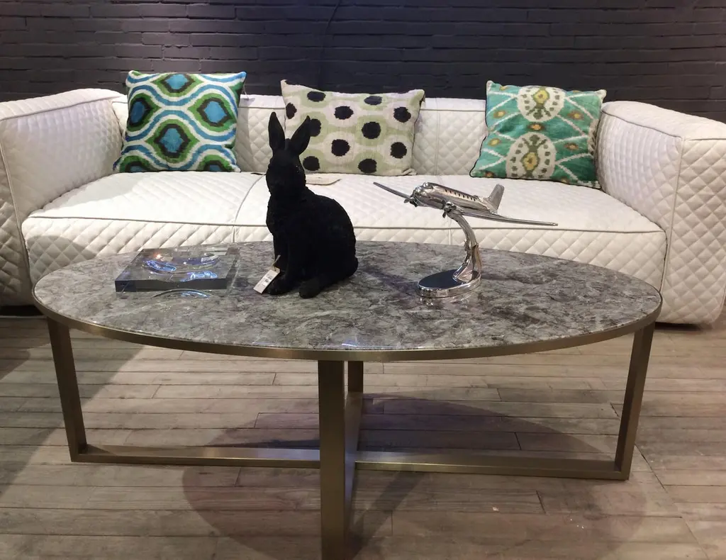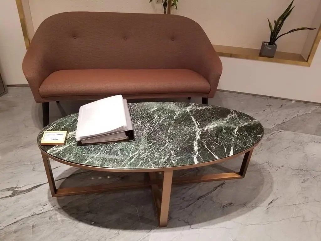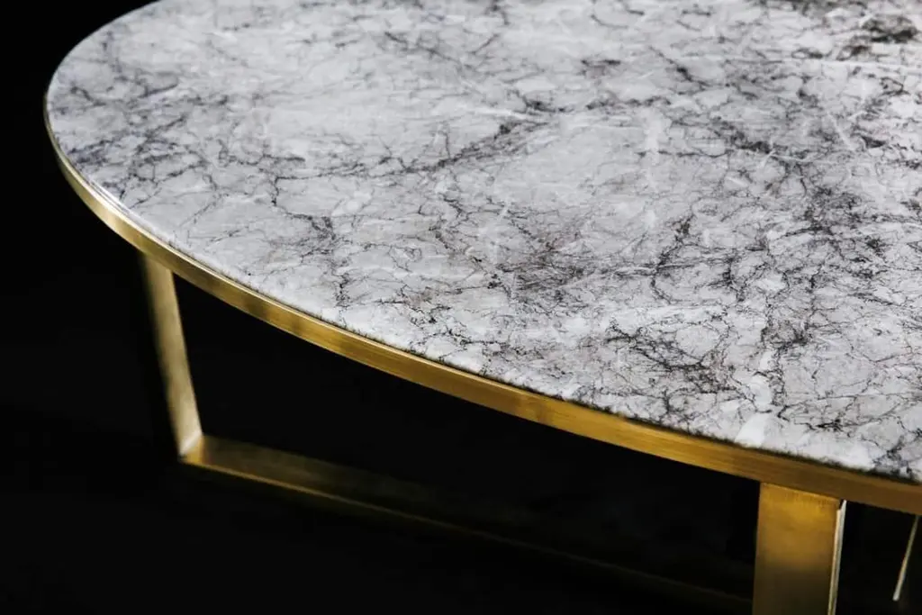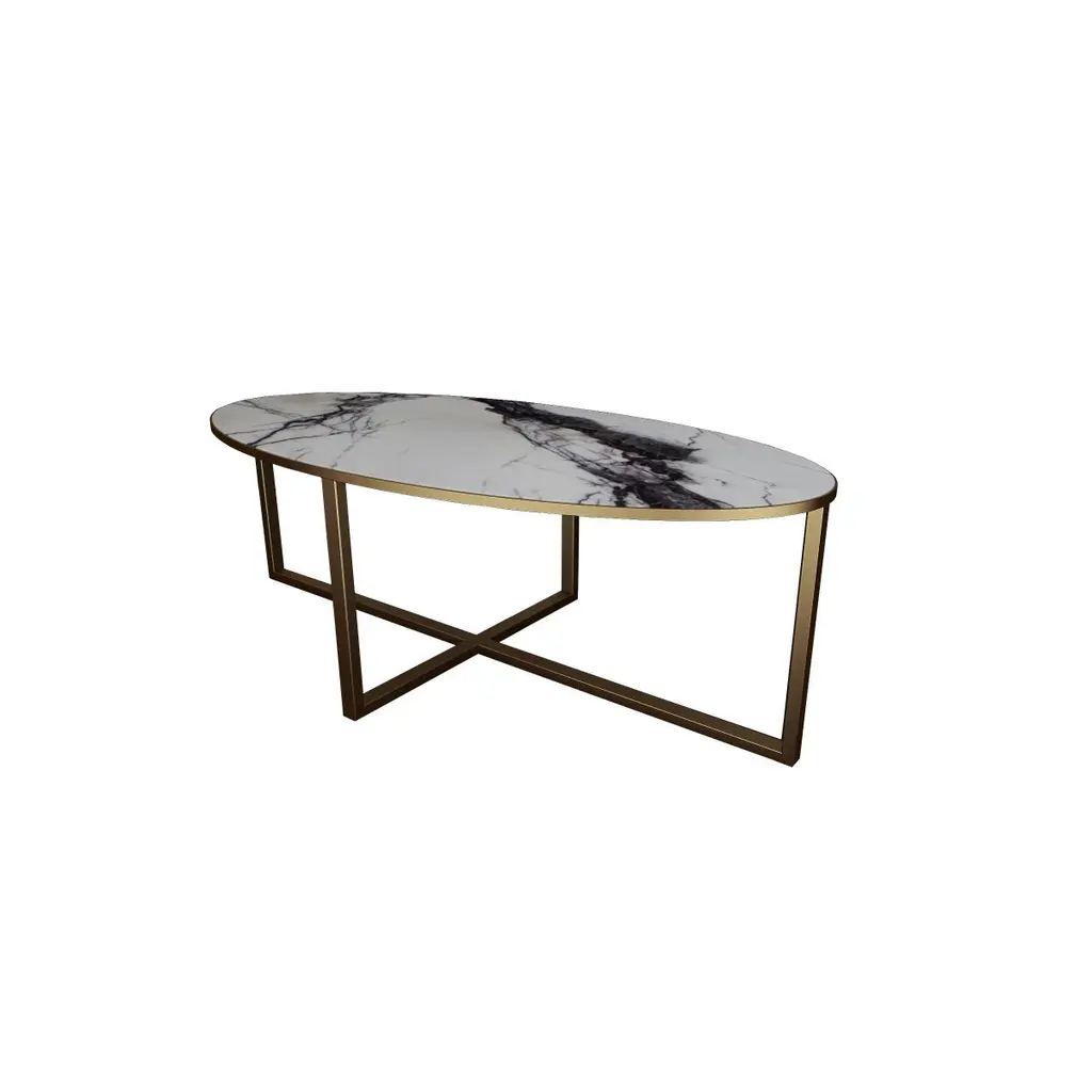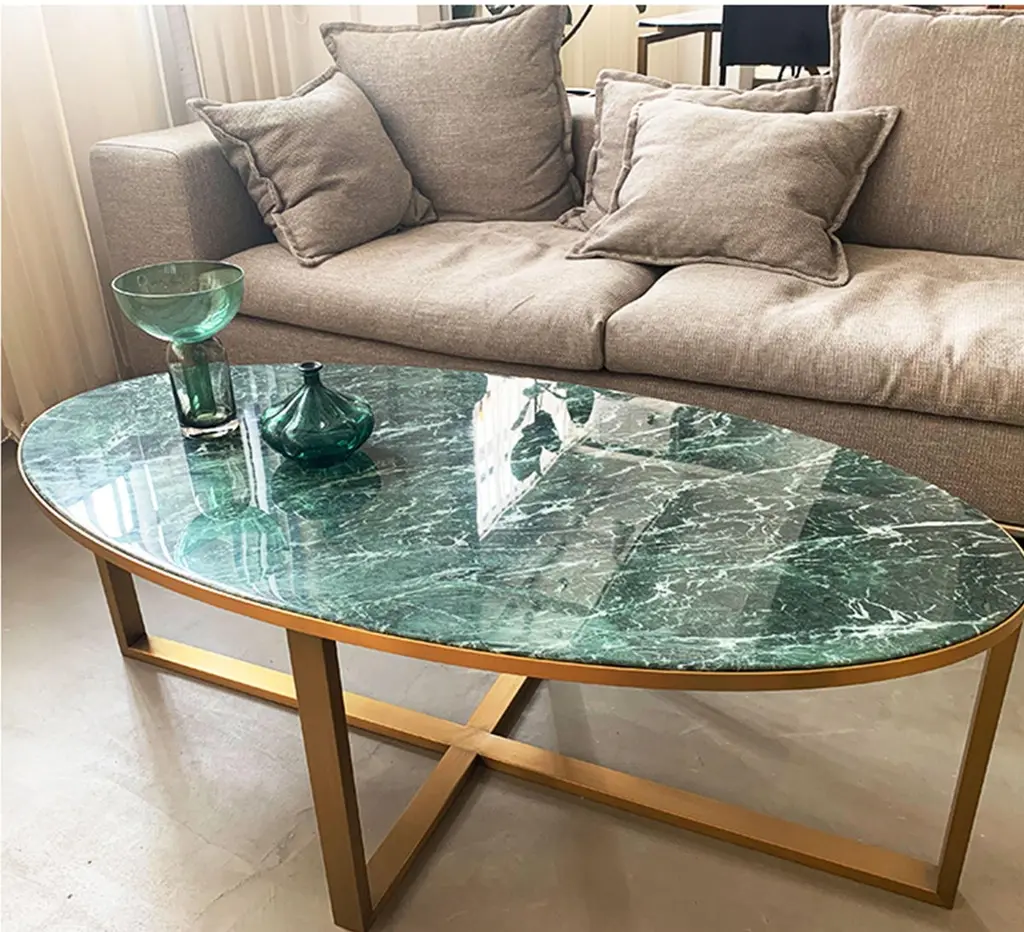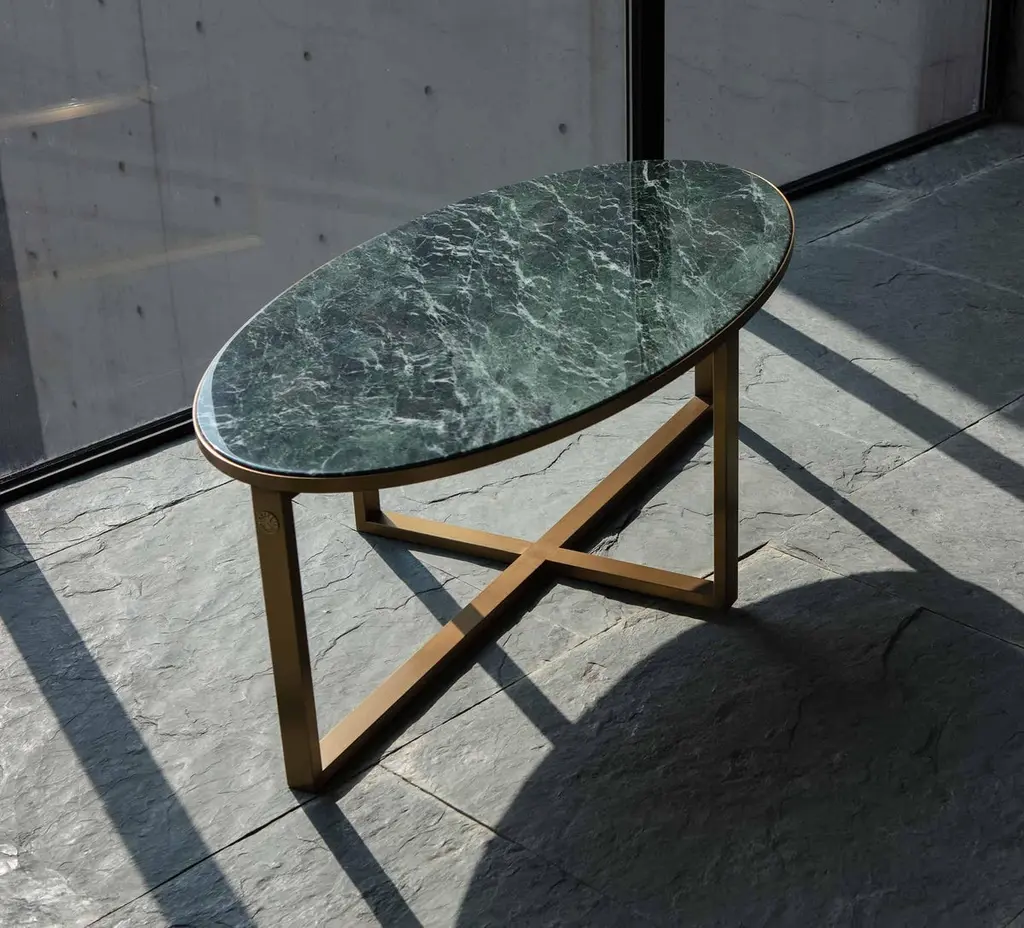 ๐ฃ๐ฟ๐ผ๐ฑ๐๐ฐ๐ ๐๐ฒ๐๐ฎ๐ถ๐น๐:NORDST MIA Coffee Oval Table from Italian Green Lightning Marble, Danish Modern Design, NewCross-style frame going up to meet a marvellous and carefully selected marble piece that has been surrounded by the stylish rim of the frame, which edges have also been polished down to avoid any sharpness and discomforting sensation.๐ง๐ฟ๐ฎ๐ฑ๐ถ๐๐ถ๐ผ๐ป๐ฎ๐น ๐๐ฒ๐๐ถ๐ด๐ป:NORDST is a Danish company that's been producing quality marble furniture for customers all over the world for many years. The focus has always been to use beautiful stones in a contemporary design setting. NORDST is also a major furniture player producing for several renowned scandinavian brands, which is also why we have our own manufacturing base in China, where we will ship out from.๐๐ฒ๐ ๐๐ฒ๐ฎ๐๐๐ฟ๐ฒ๐:โ Features a distinctive cross-style frame for a unique and eye-catching design.โ Carefully selected marble adds a touch of luxury and elegance to the overall aesthetic.โ The marble is surrounded by a stylish rim on the frame, enhancing the overall visual appeal.โ Frame edges are polished down to avoid sharpness, ensuring a safe and comfortable user experience.โ Crafted with precision, the design pays attention to the details for a refined and sophisticated look.โ The combination of marble and stylish frame creates a luxurious and upscale feel.โ The cross-style frame and marble centerpiece contribute to a sculptural and elegant presence.๐ ๐ฎ๐ฟ๐ฏ๐น๐ฒ ๐ฆ๐ฝ๐ฒ๐ฐ๐:โ 1.7cm thicknessโ Reversed beveled edgeโ High gloss finish enhances the visual appeal๐๐ฟ๐ฎ๐บ๐ฒ: โ Chamfer edge design adds a touch of sophisticationโ Special metal plating finish on steel framesโ Copper Plated Steel frame provides a sleek and modern contrast๐๐ฎ๐ฌ๐ญ๐จ๐ฆ๐๐ซ๐ฌ ๐๐๐ง ๐๐ก๐จ๐จ๐ฌ๐ ๐๐ซ๐จ๐ฆ:๐๐๐ซ๐๐ฅ๐ ๐๐จ๐ฅ๐จ๐ซ๐ฌ โโ White Mountain Marbleโ Black Marbleโ Green Marbleโ Calacatta Marbleโ Grey Marbleโ Brown Marbleโ Special White Marbleโ Red Travertaine Marbleโ Grey Travertaine Marble๐ ๐ข๐ง๐ข๐ฌ๐ก๐๐ฌ โโ Polishedโ Matte / Honedโ High-gloss (Epoxy layer)๐ ๐ซ๐๐ฆ๐/๐๐๐ ๐ฌ โโ Power Coated Iron Blackโ Power Coated Iron Whiteโ Brass Plated Steelโ Copper Plated Steelโ Stainless Steel