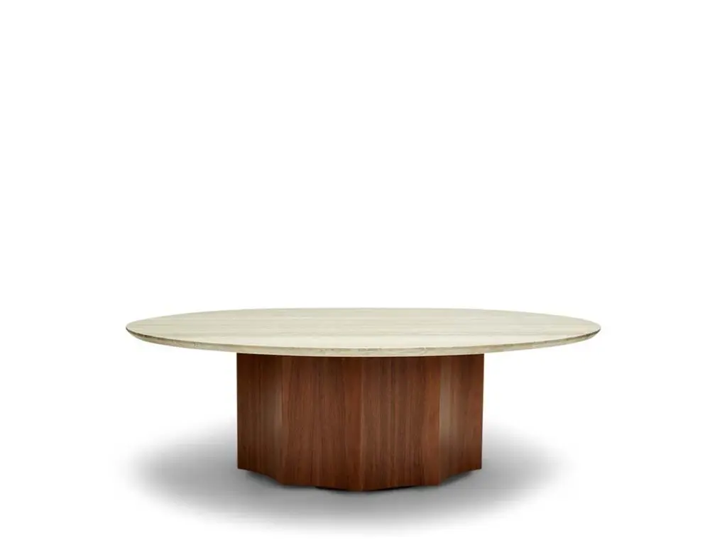 The Normandie Cocktail Table features a fluted American walnut or white oak base with a stone top. Wood top option available. The Lawson-Fenning collection is designed and handmade in Los Angeles, California. Reach out to discover what options are currently in stock.