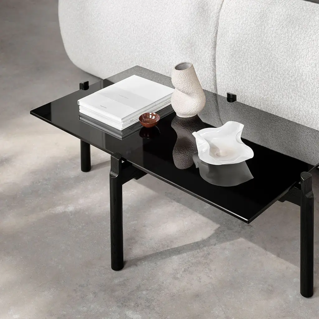 The Notch Rectangular Coffee Table elevates living spaces through its linear precision and exceptional craftsmanship. Designer Gunther Pelgrims draws on his extensive background in high-end interior woodworking to create this distinctive piece where traditional joinery meets contemporary form. The table's elongated silhouette makes it ideally suited for placement in front of sofas or in spaces where directional emphasis is desired. Its semi-transparent black glass top features elegantly bevelled edges that create a refined border around the surface, while allowing subtle visibility of the remarkable frame beneath. What truly distinguishes this table is its meticulously executed notched joinerya cabinet maker's detail that Pelgrims has elevated into a defining design element. The black stained oak frame reveals natural wood grain variations that add organic warmth to the table's geometric precision, creating a compelling dialogue between industrial glass and natural wood. For spaces requiring different proportions or to create nested arrangements, consider complementing this rectangular version with the Notch collection's round or square variations, allowing for cohesive design language throughout your interior landscape.
