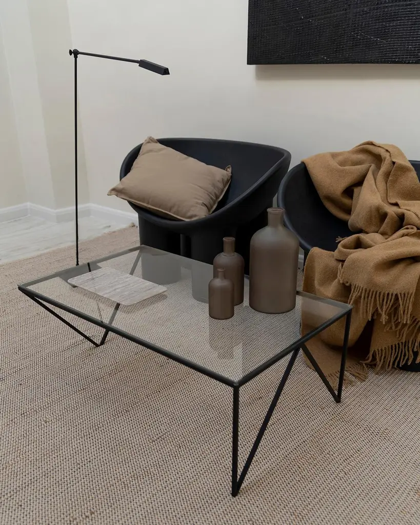 Object 037 Coffee Table by NG DesignDimensions: D90 x W54 x H34 cmMaterials: Powder coated steel,Tempered GlassAlso Available: All of objects available in different materials and colors on demand.Coffee table with glass top, supported on three points. Perfect for modern and more classic interiors."Our brand was created out of a passion for unconventional design. The furniture we produce is characterized by the highest quality and attention to detail. Each piece of furniture is handmade in Poland and its design defies a traditional approach. standard of interior design. to an object of uniqueness, which makes it a form in itself".