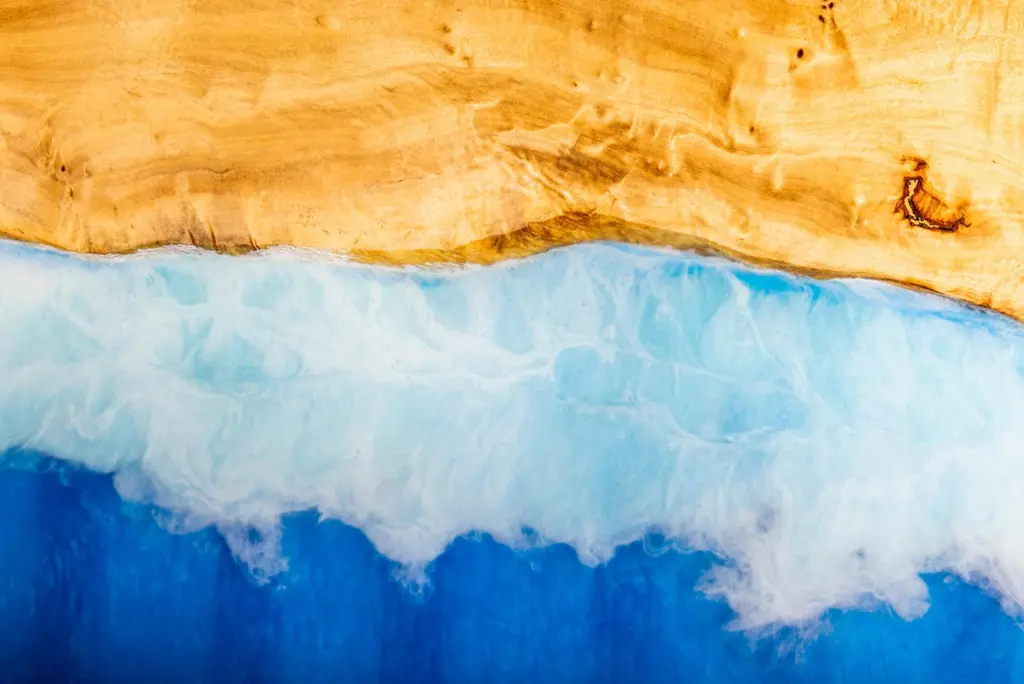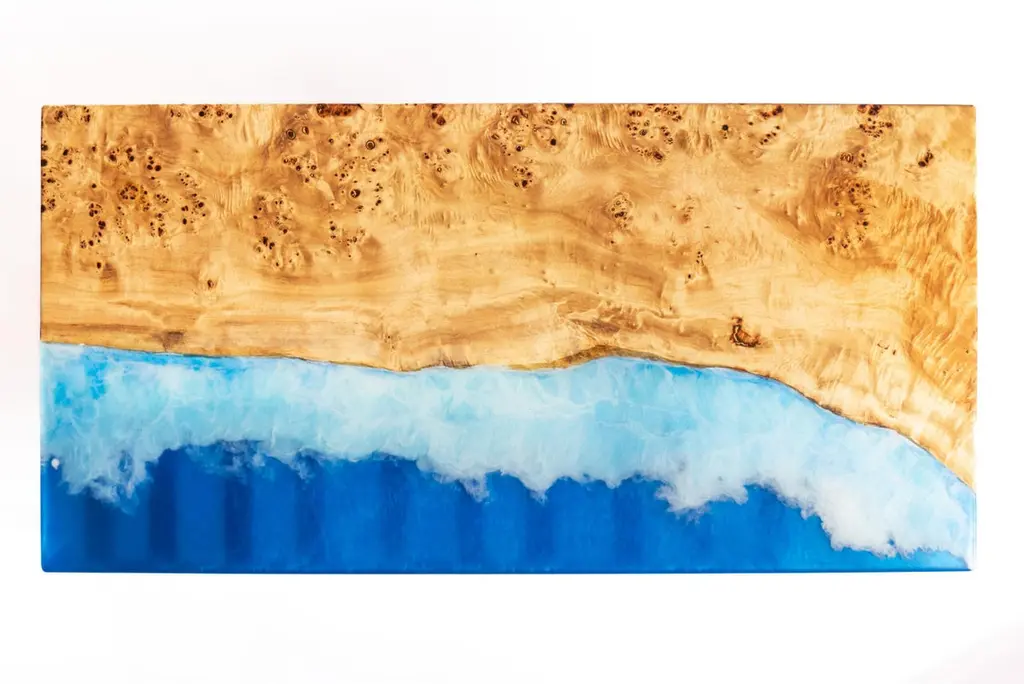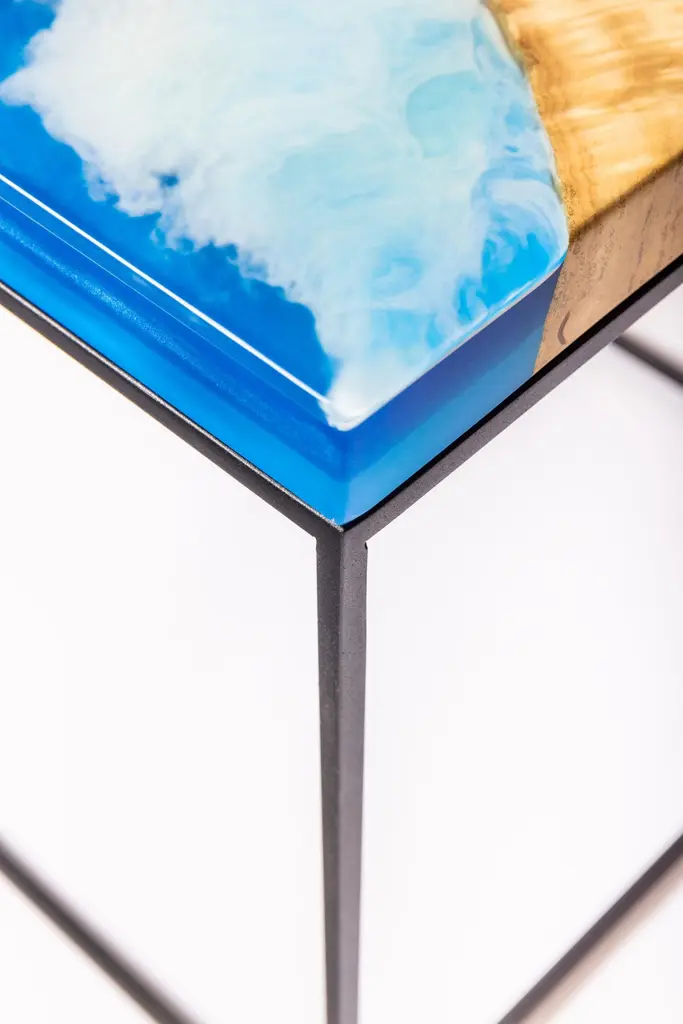 Ocean Beach Coffee Table by KV DesignOne Of A KindDimensions: D 50 x W 100 x H 45 cm.Materials: Poplar wood, epoxy, and metal.Everything is custom-made 1 of 1 edition. Please contact us.KV Design is a team of professionals, and we believe that our custom-made furniture is not simply part of the interior design. We use high-quality wood and epoxy resin in the production of unique state-of-the-art products. Our ideology is that our tables are not solely to be used for their main purpose, but also to be observed and enjoyed as a piece of art. Hence, we combine functionality and elegance into the creation of a captivating and complex product. For the production of our furniture, we strive to select the highest quality materials from leading brands on the market. We invest endless hours of manual labor in the making of every single element part of our furniture. However, everyorder is strictly delivered within no more than 4 weeks.