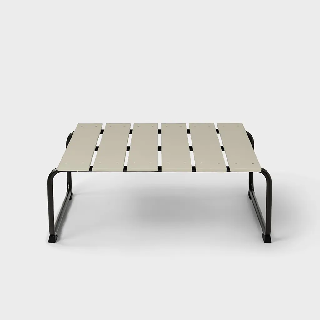 Simple shapes and a light profile characterize this outdoor table, made with recycled materials that keep waste out of the ocean. It's crafted by Mater, a Danish brand that champions sustainability and ethical design.