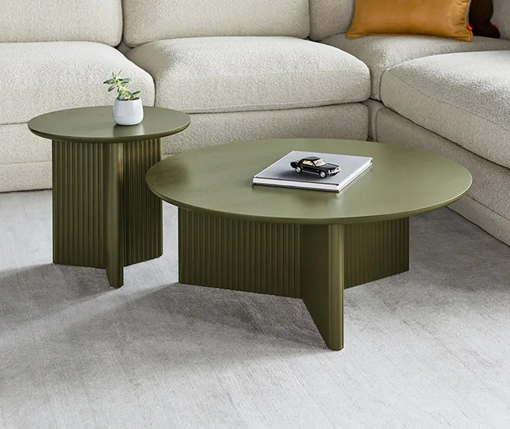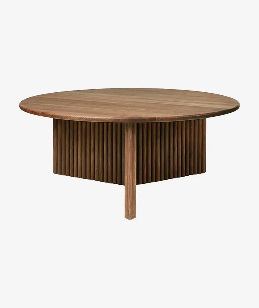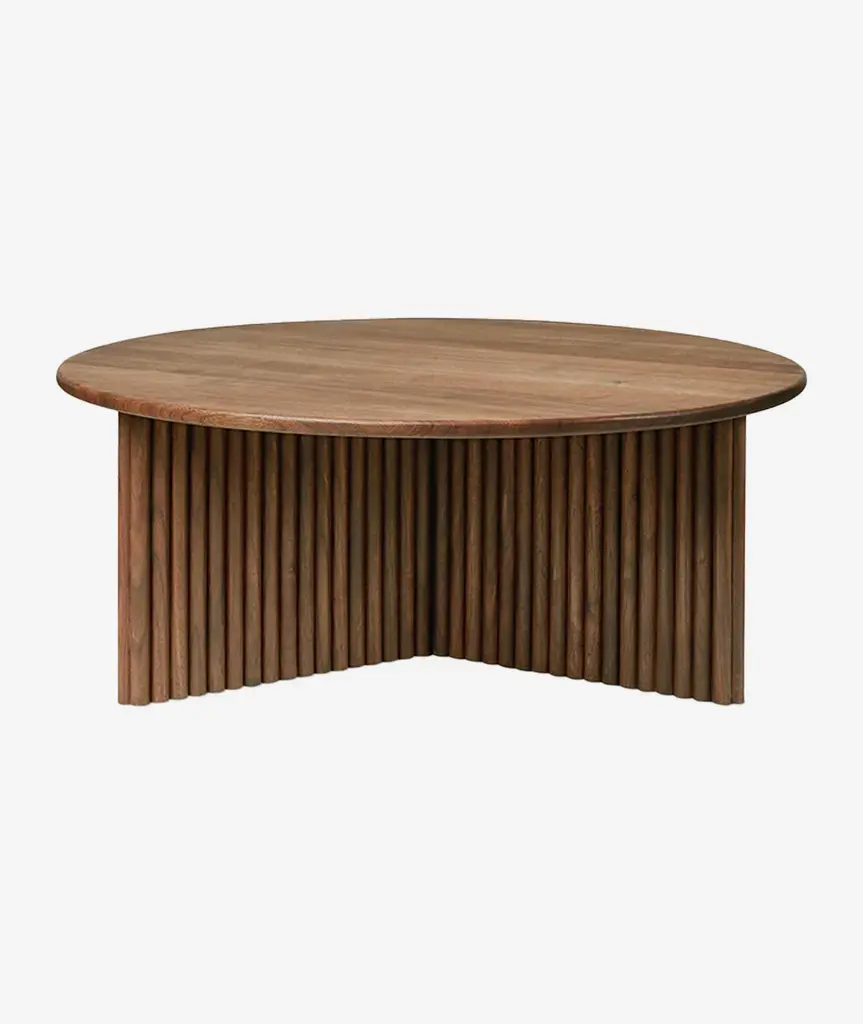 Neo‐Classical forms get a contemporary treatment with the Odeon Table Series, which evokes Doric columns and a muse‐like femininity. From every angle, these tables reveal qualities that gently juxtapose and interplay: a scalloped base with a smooth tabletop; textured, organic wood grain in painted or natural finish; soft curves balanced by chiseled lines. The slender stature of the Odeon Coffee Table makes it the perfect addition to any seating area, and it can be nested with the Odeon End Table to create a grouping that’s both elegant and functional.