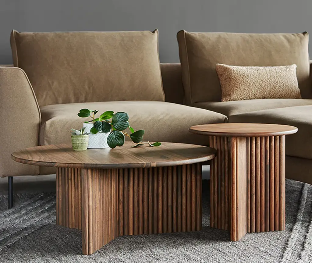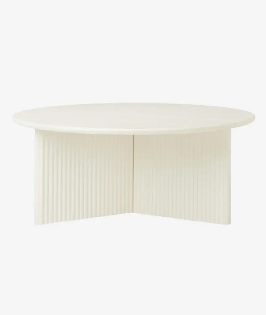 Neo‐Classical forms get a contemporary treatment with the Odeon Table Series, which evokes Doric columns and a muse‐like femininity. From every angle, these tables reveal qualities that gently juxtapose and interplay: a scalloped base with a smooth tabletop; textured, organic wood grain in painted or natural finish; soft curves balanced by chiseled lines. The slender stature of the Odeon Coffee Table makes it the perfect addition to any seating area, and it can be nested with the Odeon End Table to create a grouping that’s both elegant and functional.