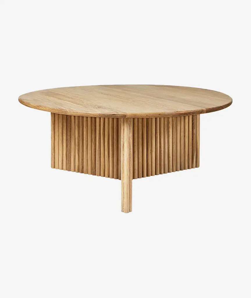 Neo‐Classical forms get a contemporary treatment with the Odeon Table Series, which evokes Doric columns and a muse‐like femininity. From every angle, these tables reveal qualities that gently juxtapose and interplay: a scalloped base with a smooth tabletop; textured, organic wood grain in painted or natural finish; soft curves balanced by chiseled lines. The slender stature of the Odeon Coffee Table makes it the perfect addition to any seating area, and it can be nested with the Odeon End Table to create a grouping that’s both elegant and functional.