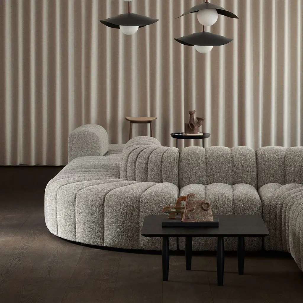 Oku is an interpretation of the Japanese word for oak ‘Ōku'. Oku refers to the essence of the design - oak. "Through experiments with the balance between lightness and heaviness, making it paper thin when seen from one angle and solid from others, we've emphasized the material in a simple design". The Oku table top is produced in oak veneer with round edges, adding a refined detail to the large surface. The legs of turned oak timber sections, is positioned sporadically to create the illusion of a floating table top, while also adding a sculptural detail to the table.