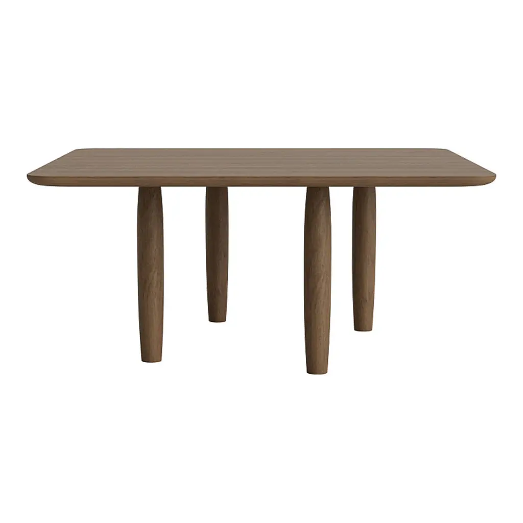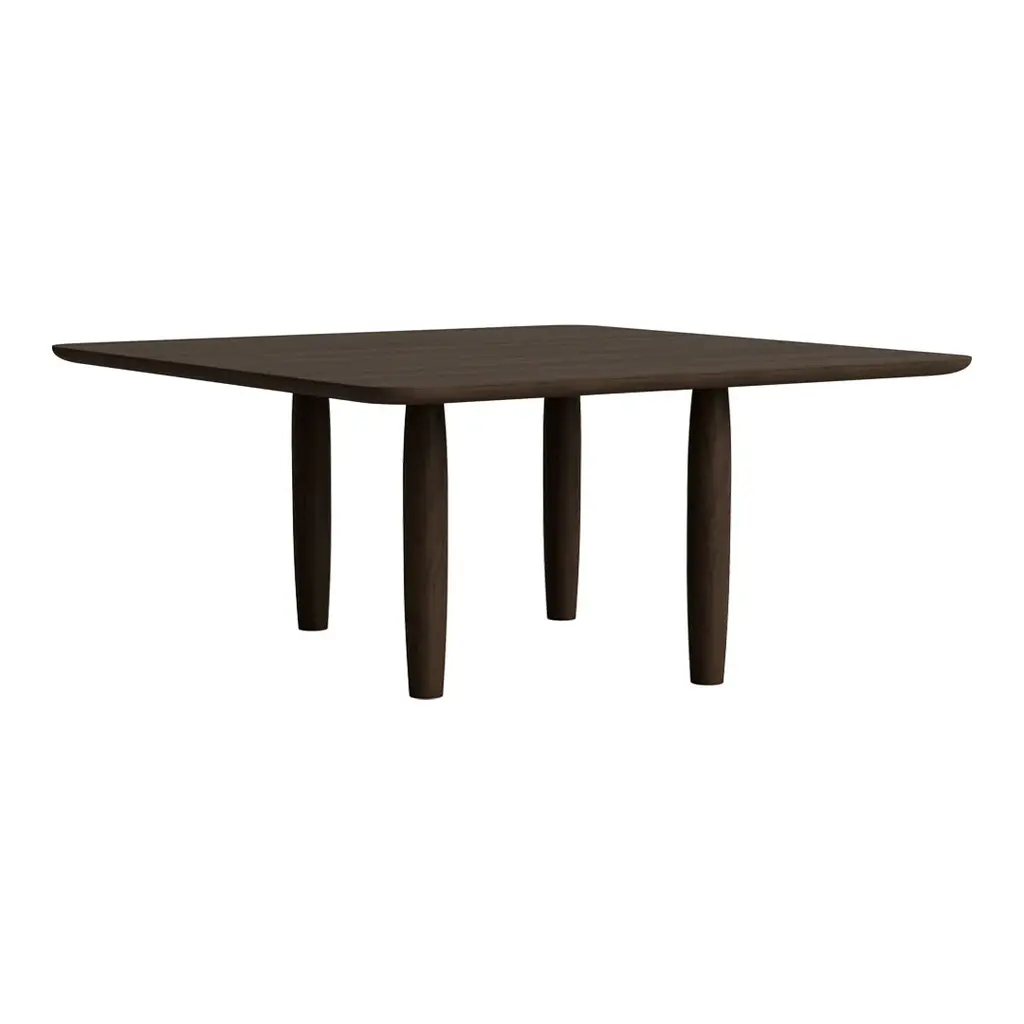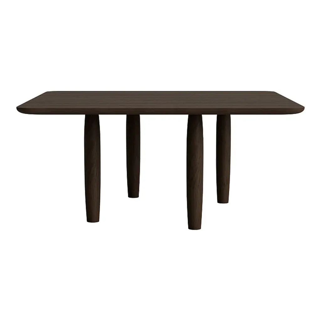 Oku is an interpretation of the Japanese word for oak ‘Ōku'. Oku refers to the essence of the design - oak. "Through experiments with the balance between lightness and heaviness, making it paper thin when seen from one angle and solid from others, we've emphasized the material in a simple design". The Oku table top is produced in oak veneer with round edges, adding a refined detail to the large surface. The legs of turned oak timber sections, is positioned sporadically to create the illusion of a floating table top, while also adding a sculptural detail to the table.