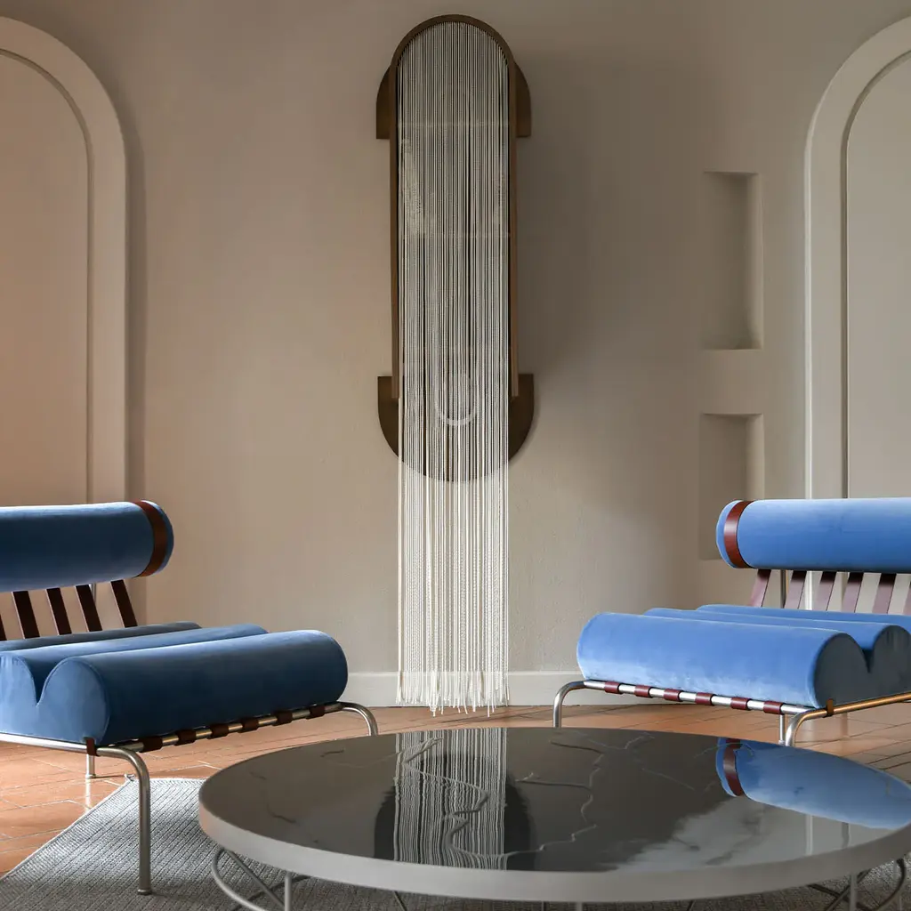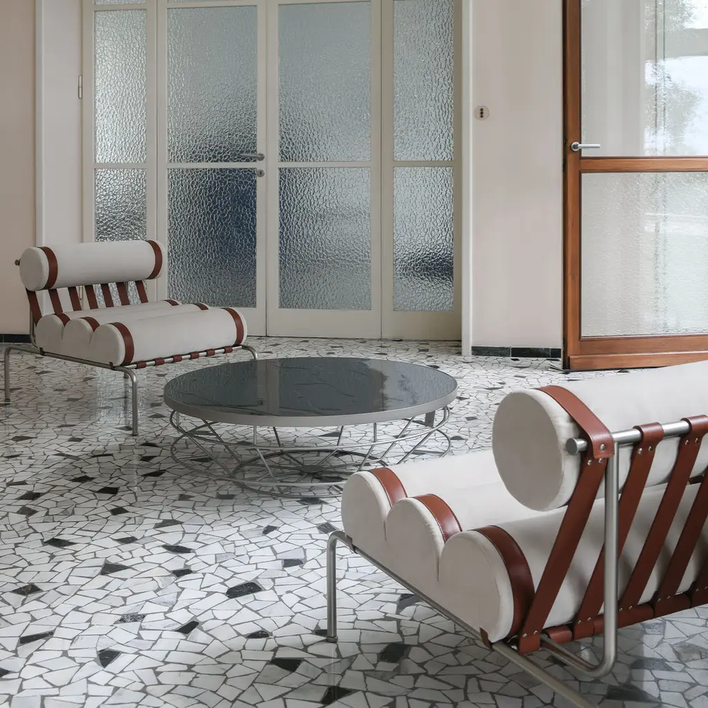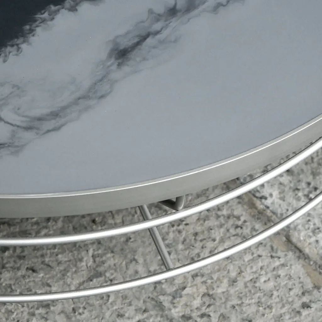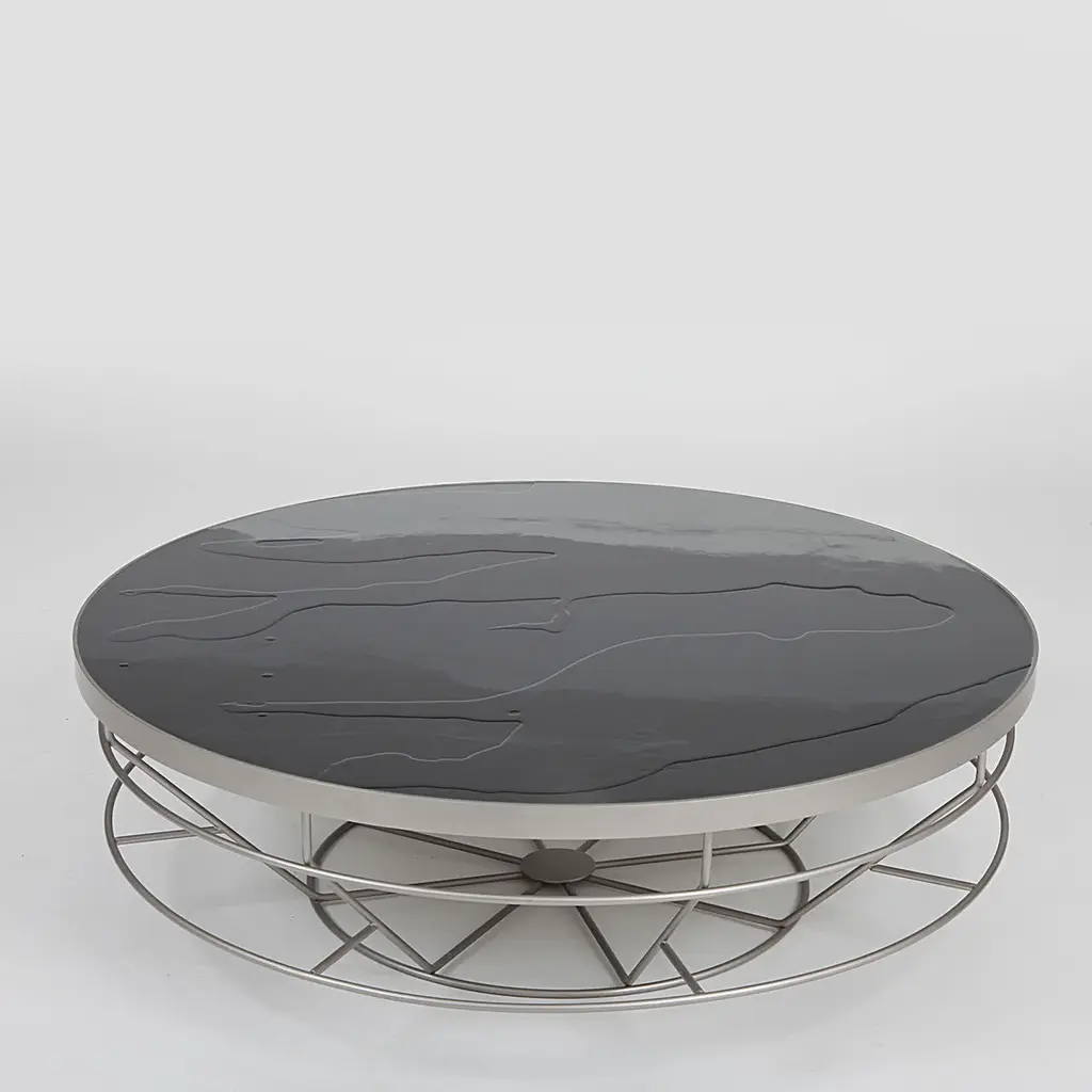 Contemporary design and traditional craftsmanship exquisitely merge in the sleek and clean lines of this gorgeous coffee table, an ideal complement for a sophisticated interior of modern style. Handmade of steel, the intricate and visually striking base supports a round top fashioned of epoxy resin, spread by hand to obtain singular shades. Available in a taller version, it is also customizable in shade and finish. Please refer to the Concierge for details.