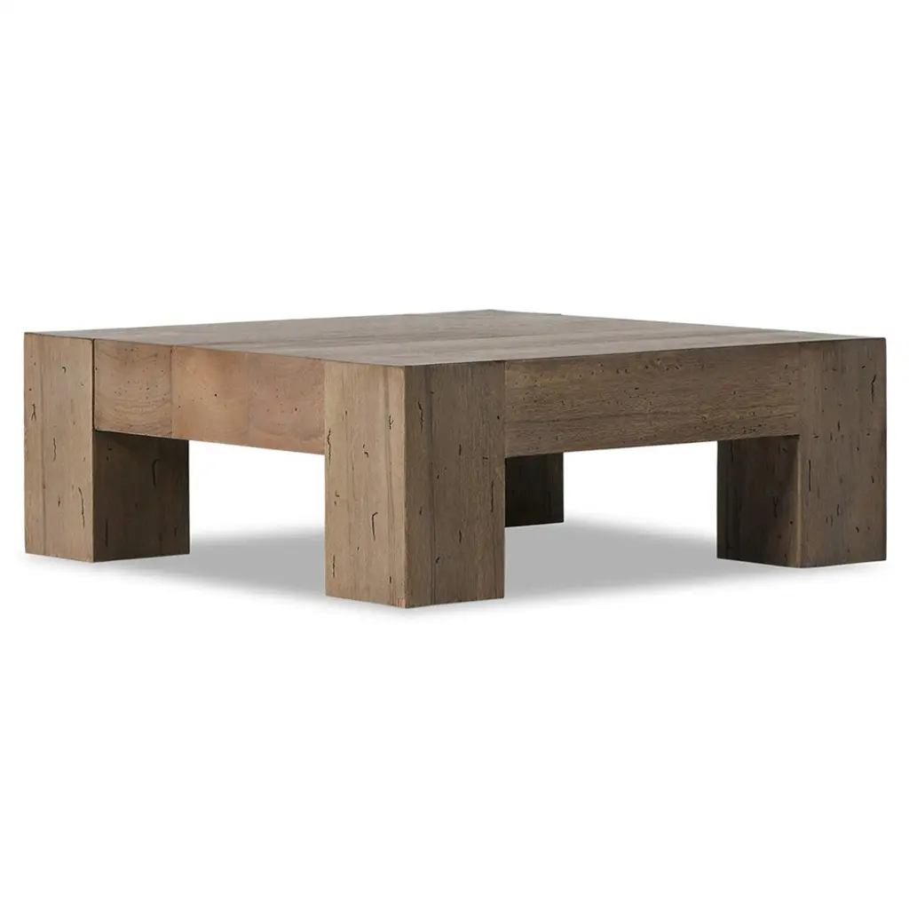 Oliver Rustic Lodge Brown Oak Wood Square Coffee Table - 40"