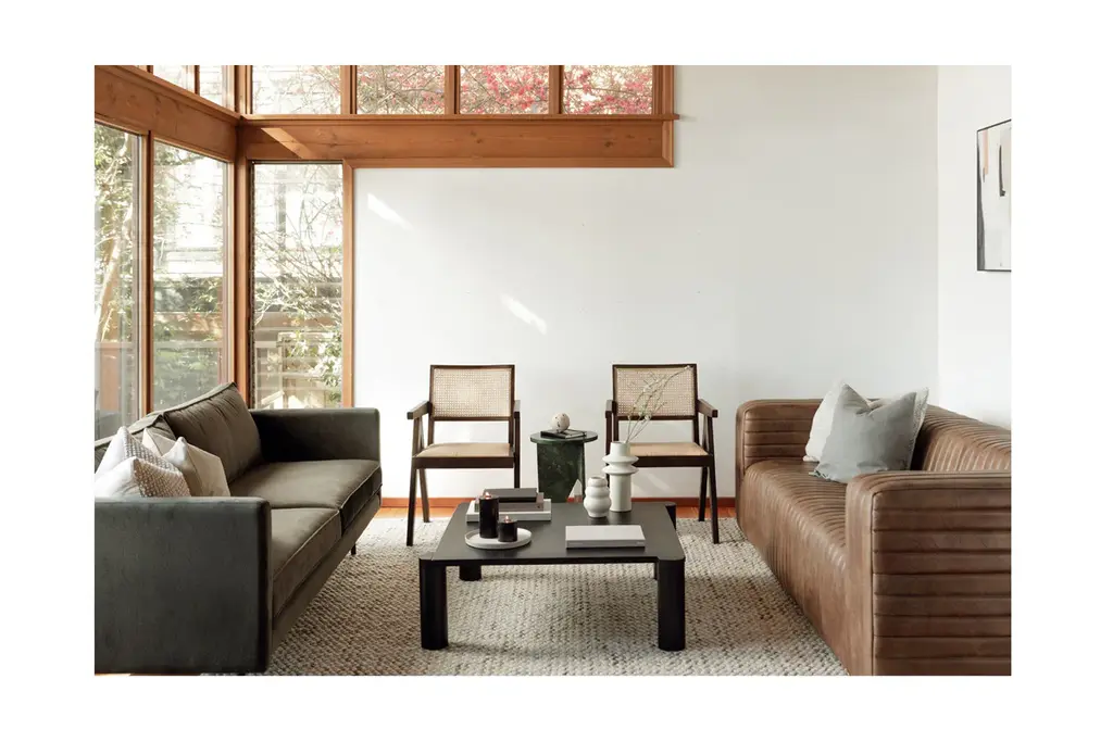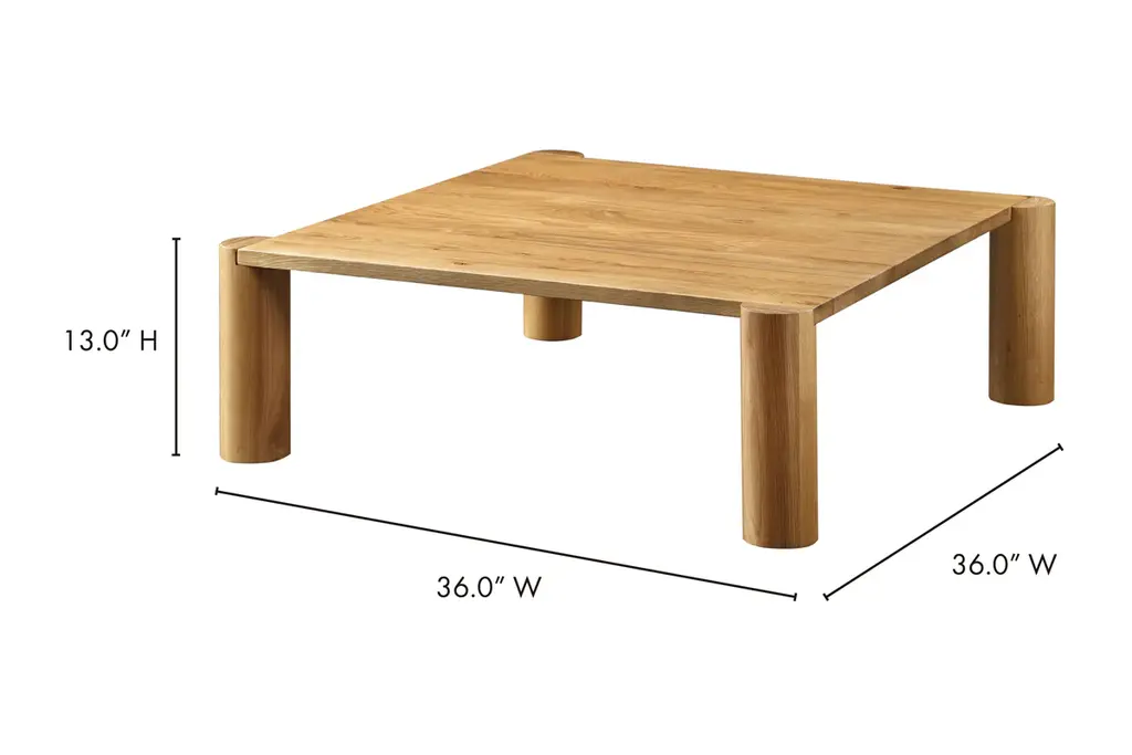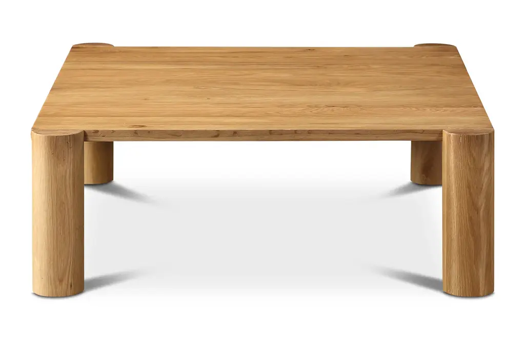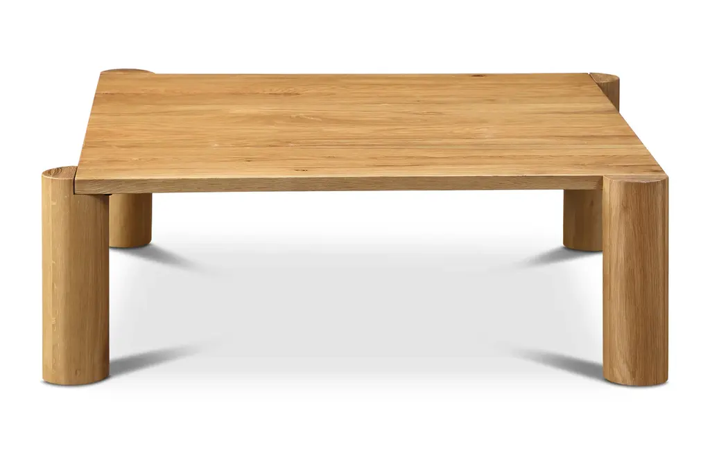 Add contemporary flair to your living space with the Omni Coffee Table. This square solid white oak coffee table is stylish and versatile, available in natural or black finishes to fit your decor. The cylindrical legs can be mounted on the same or opposite sides of the square tabletop for a sleek, customizable look.