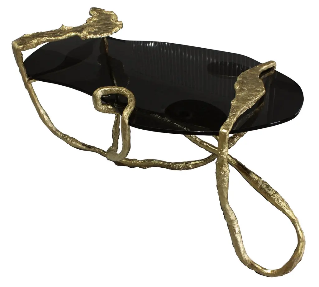 One Of A Kind Gilded Steel And Glass Sculptural Hand Crafted Coffee Table