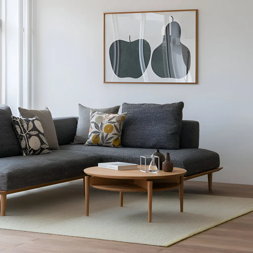 The Onga Coffee Table Sangyo is made from solid wood with a nearly one-inch-thick tabletop that seems to float, thanks to the design of its legs and frame. An optional lower shelf offers extra storage space. This table pairs well with the Onga series' corner couch style, creating a space for relaxation and comfort.