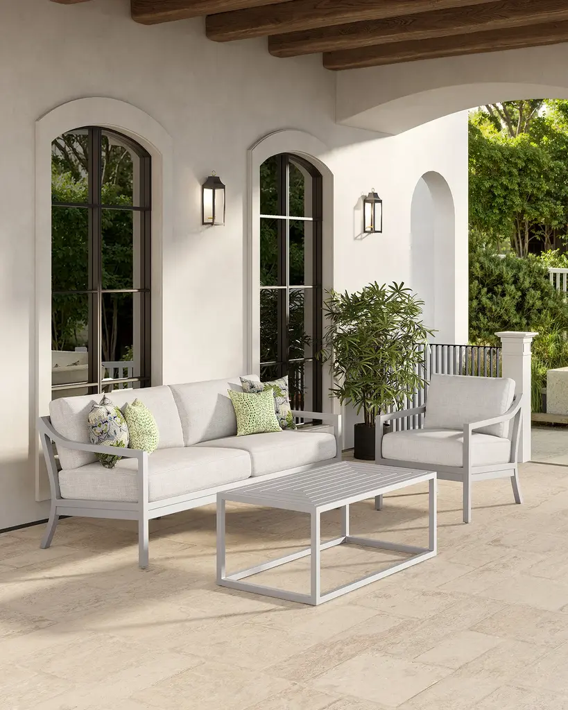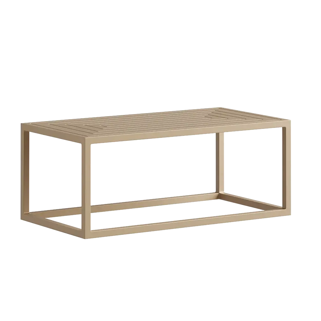 Dimensions: 48W x 25D x 19H A versatile new outdoor collection that features everything you need to create an outdoor oasis! The oomph Outdoor Cocktail Table is the work horse of the collection. Anchor your space with this perfect piece and the rest is easy! The only question is - what color! Frame: Weather-resistant, premium powder coated aluminum Features: Fully-welded and assembled. 360 degree welds for maximum strength and longevity. Solid billet aluminum tops milled in modern, geometric patterns Made in America
