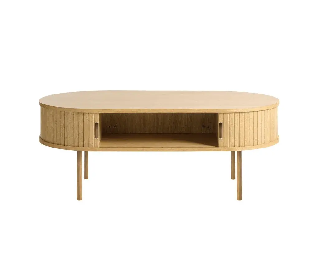 Showcasing tambour-paneled sides and welcome compartments for storage, the Orella Storage Coffee Table provides space to display decor and keep your living room essentials close at hand. This eye-catching addition to your living room will not only cement your modern aesthetic, it will stand the test of time with its clean lines and striking silhouette. A perfect fit for small spaces, the Orella Collection is a welcome addition to any modern or contemporary space. Featuring eye-catching tambour paneling, this collection makes a welcome style statement while maintaining its useful functionality.
