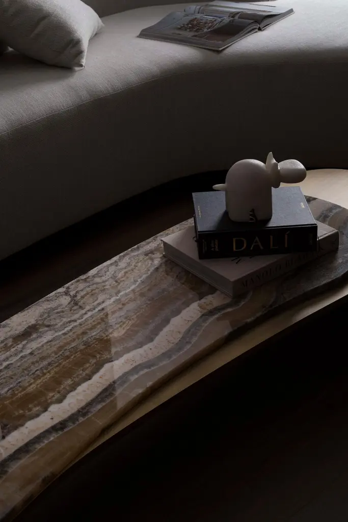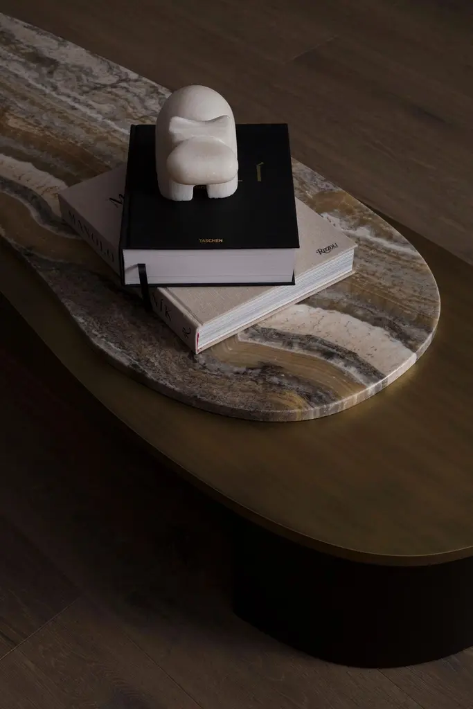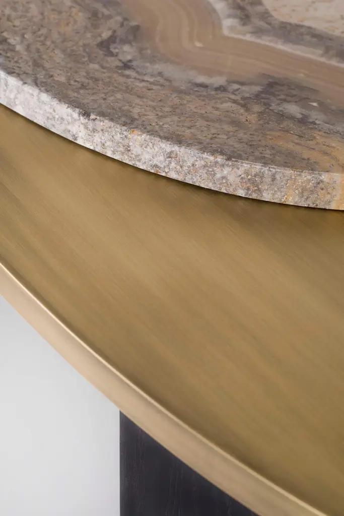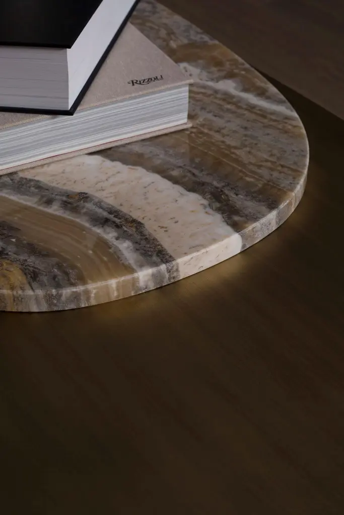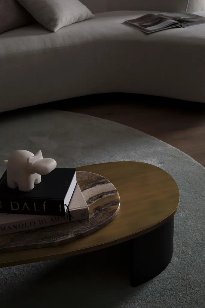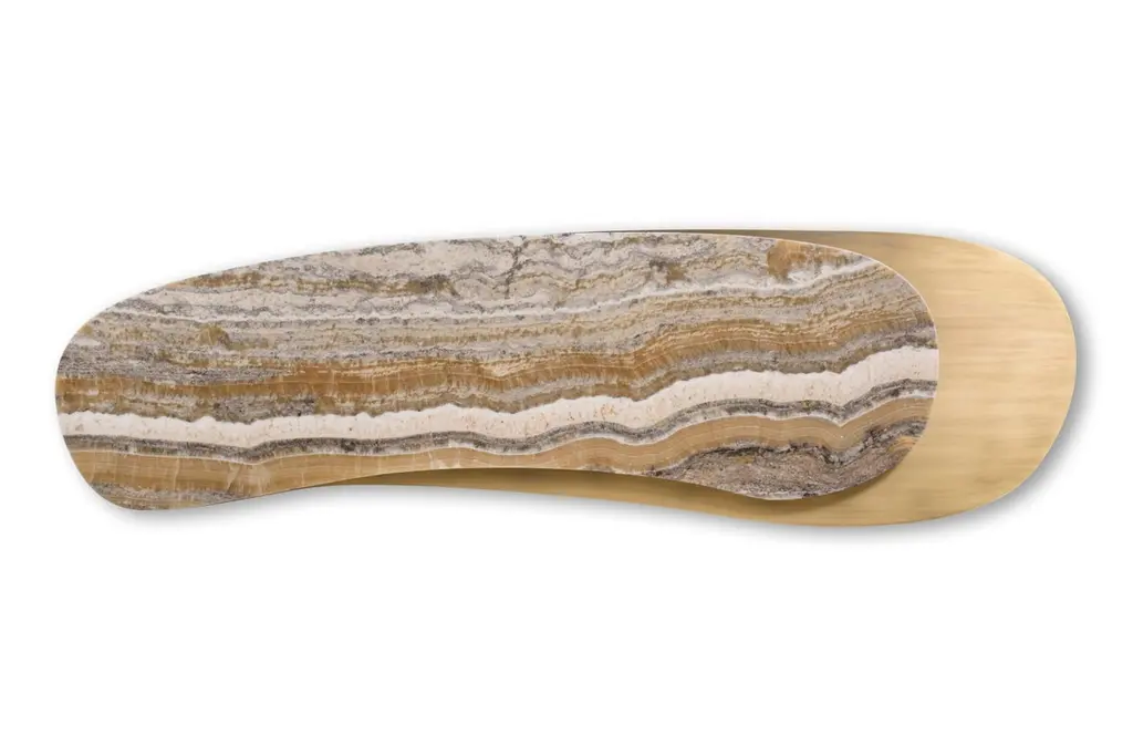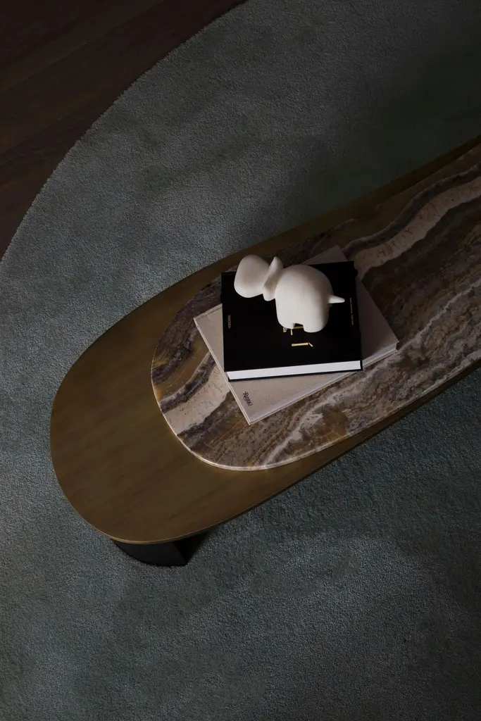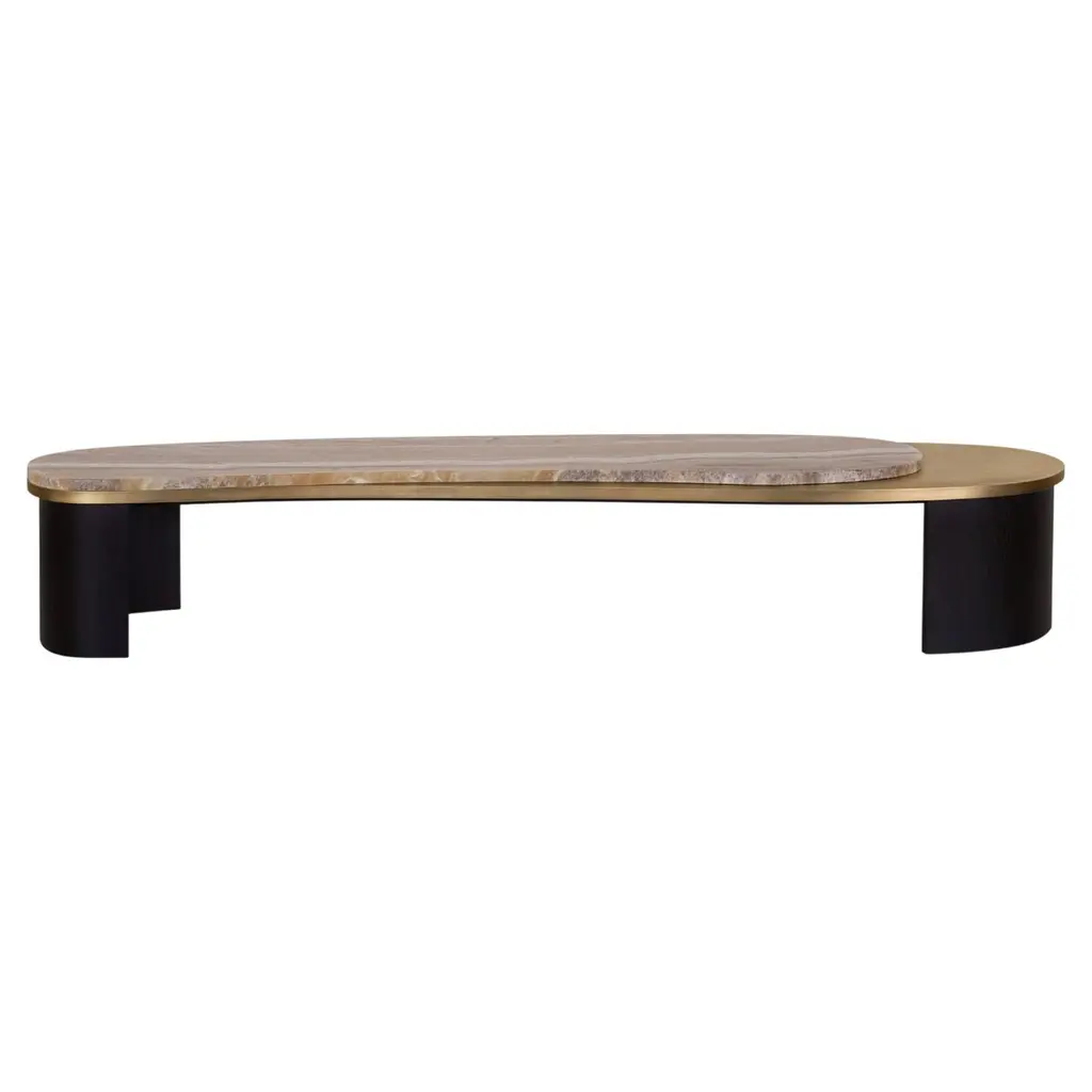 Armona Coffee Table, Contemporary Collection, Handcrafted in Portugal - Europe by Greenapple.Designed by Rute Martins for the Contemporary Collection, the Armona modern coffee table pays homage to the natural beauty and organic lines of Armona island. Meticulously crafted with the utmost attention to detail, Armona combines high-quality materials and timeless design. A modern coffee table designed for today’s living interiors.Armona Coffee Table Material CodesWD107 American oak; open-pore black stained; matt finishME029 Dark oxidised brass; matt finishST004 Ónix Miel; polishedHandcrafted in Portugal - Europe by GreenappleUnique by design, Crafted by peopleFounded in 2005 by Sérgio Rebola and Rute Martins, Greenapple designs and produces in-house luxury furniture for exclusive customers worldwide.Our own in-house production facility allows us to be obsessed with detail, and gives us the freedom to dedicate ourselves to the most demanding tailor-made and customised work. As Rute designs all the unique pieces, Sérgio assures the high-quality standards through the whole process - from design to production; from production to your home. Fine craftsmanship, whether perfected by experienced hands or state-of-the-art machinery is quintessential in delivering top quality experiences.