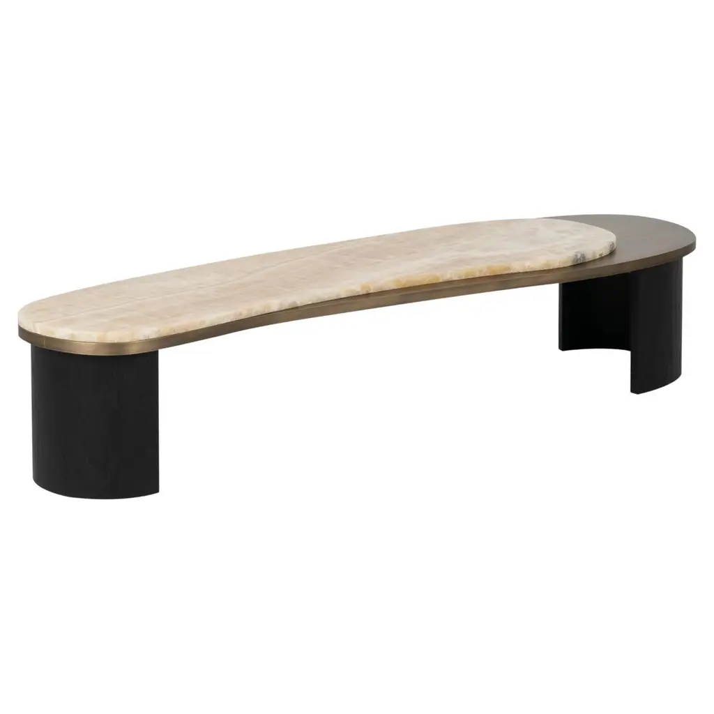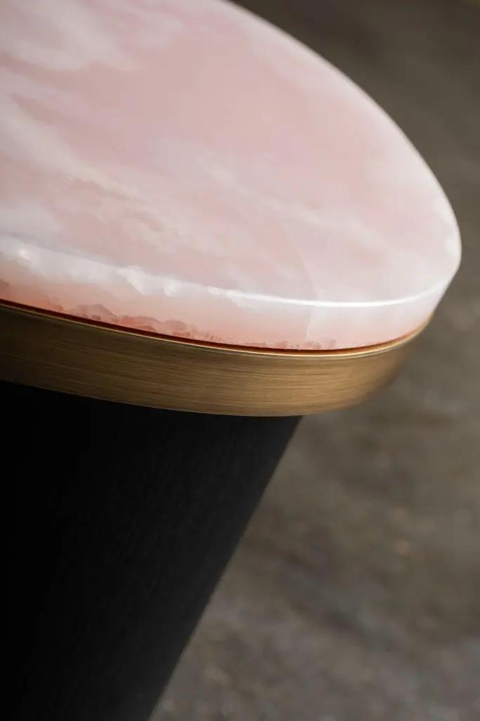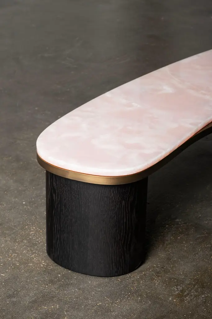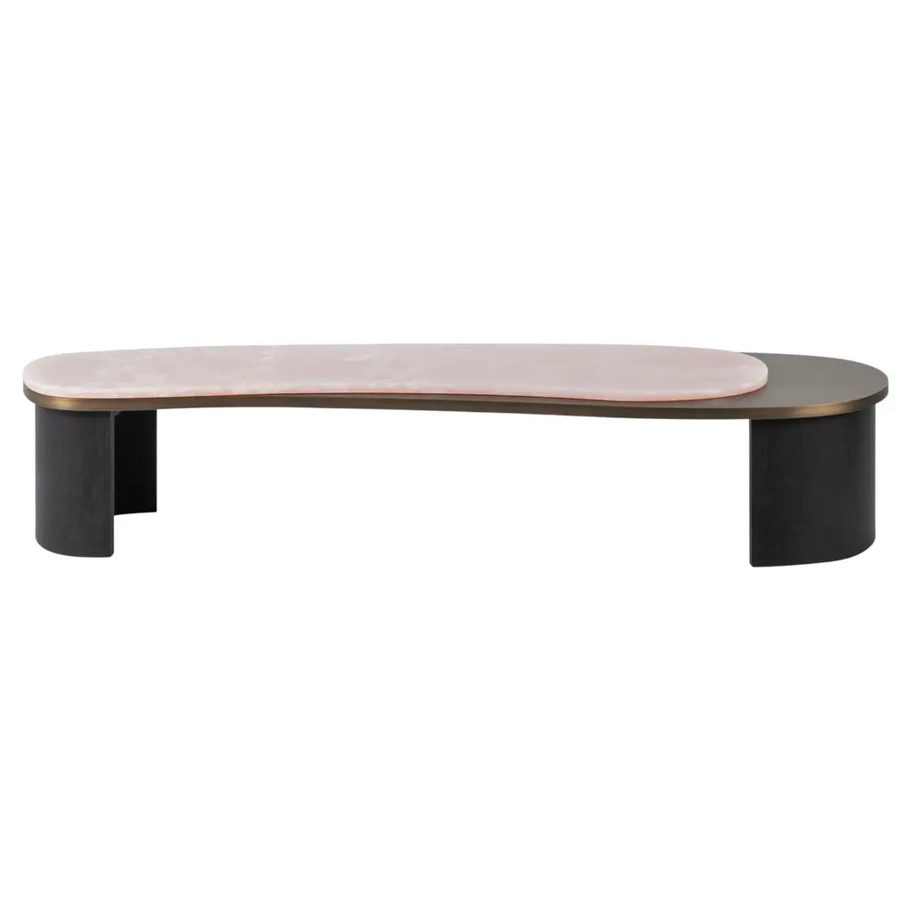 Armona coffee table, Contemporary Collection, Handcrafted in Portugal - Europe by Greenapple.Designed by Rute Martins for the Contemporary Collection, the Armona modern coffee table pays homage to the natural beauty and organic lines of Armona island. Meticulously crafted with the utmost attention to detail, Armona combines high-quality materials and timeless design. A modern coffee table designed for today’s living interiors.Armona Coffee Table Material CodesWD107 American Oak; open-pore black stained; matt finishME029 Dark oxidised brass; matt finishST058 Pink Onyx; polishedHandcrafted in Portugal - Europe by GreenappleUnique by design, Crafted by peopleFounded in 2005 by Sérgio Rebola and Rute Martins, Greenapple designs and produces in-house luxury furniture for exclusive customers worldwide.Our own in-house production facility allows us to be obsessed with detail, and gives us the freedom to dedicate ourselves to the most demanding tailor-made and customized work. As Rute designs all the unique pieces, Sérgio assures the high-quality standards through the whole process - from design to production; from production to your home. Fine craftsmanship, whether perfected by experienced hands or state-of-the-art machinery is quintessential in delivering top quality experiences.
