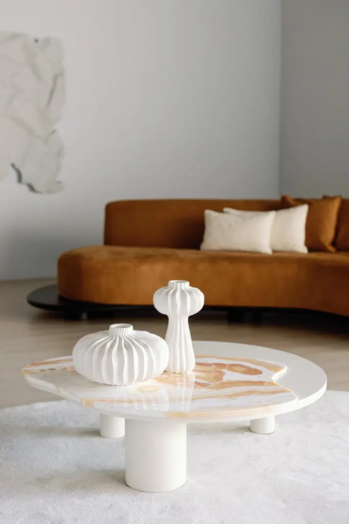 Bordeira coffee table, Contemporary Collection, Handcrafted in Portugal - Europe by Greenapple.Designed by Rute Martins for the Contemporary Collection, the Bordeira modern coffee table was designed to add the essence of nature into the interior space by reimagining the captivating lines of Bordeira beach in a furniture piece. Through the sweeping curves, ocean meets the land in perfect harmony, creating a modern coffee table that conveys true freedom of movement.Bordeira combines fine craftsmanship and noble materials, becoming a Greenapple’s best-seller and a favorite piece among designers.Bordeira Coffee Table Material CodesFI176 Oyster white lacquer; semi glossST030 Green Onyx; polishedHandcrafted in Portugal - Europe by GreenappleUnique by design, Crafted by peopleFounded in 2005 by Sérgio Rebola and Rute Martins, Greenapple designs and produces in-house luxury furniture for exclusive customers worldwide.Our own in-house production facility allows us to be obsessed with detail, and gives us the freedom to dedicate ourselves to the most demanding tailor-made and customized work. As Rute designs all the unique pieces, Sérgio assures the high-quality standards through the whole process - from design to production; from production to your home. Fine craftsmanship, whether perfected by experienced hands or state-of-the-art machinery is quintessential in delivering top quality experiences.