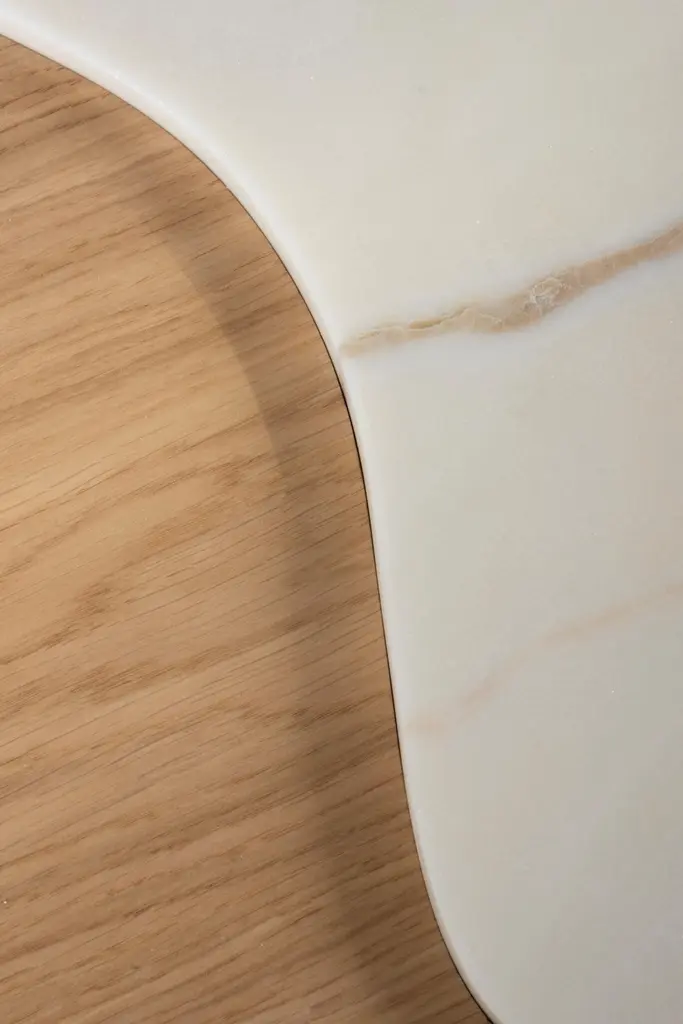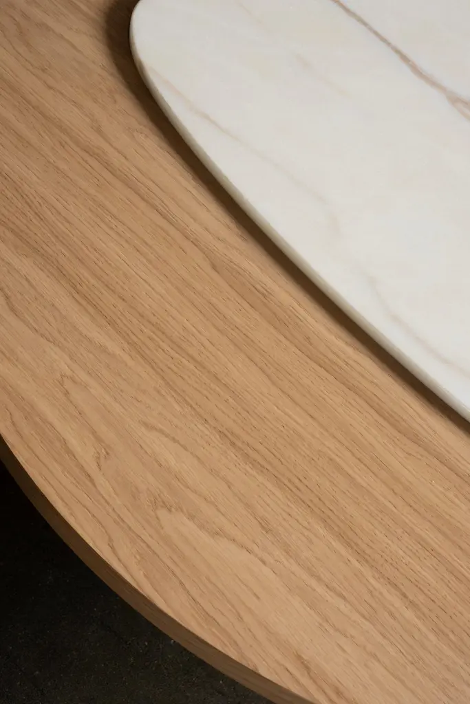 Bordeira coffee table, Contemporary Collection, Handcrafted in Portugal - Europe by Greenapple.Designed by Rute Martins for the Contemporary Collection, the Bordeira modern coffee table was designed to add the essence of nature into the interior space by reimagining the captivating lines of Bordeira beach in a furniture piece. Through the sweeping curves, ocean meets the land in perfect harmony, creating a modern coffee table that conveys true freedom of movement.Bordeira combines fine craftsmanship and noble materials, becoming a Greenapple best-seller and a favorite piece among designers.Bordeira coffee table Material CodesWD018 American Oak; natural colour; satin finishST010 Calacatta Cremo marble; polishedHandcrafted in Portugal - Europe by GreenappleUnique by design, Crafted by peopleFounded in 2005 by Sérgio Rebola and Rute Martins, Greenapple designs and produces in-house luxury furniture for exclusive customers worldwide.Our own in-house production facility allows us to be obsessed with detail, and gives us the freedom to dedicate ourselves to the most demanding tailor-made and customized work. As Rute designs all the unique pieces, Sérgio assures the high-quality standards through the whole process - from design to production; from production to your home. Fine craftsmanship, whether perfected by experienced hands or state-of-the-art machinery is quintessential in delivering top quality experiences.
