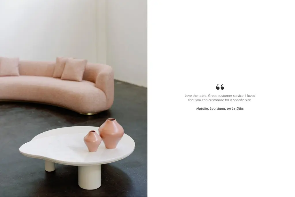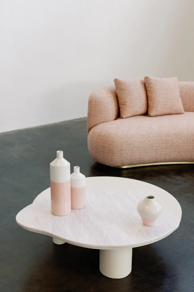 Bordeira Coffee Table, Contemporary Collection, Handcrafted in Portugal - Europe by Greenapple.Designed by Rute Martins for the Contemporary Collection, the Bordeira modern coffee table was designed to add the essence of nature into the interior space by reimagining the captivating lines of Bordeira beach in a furniture piece. Through the sweeping curves, ocean meets the land in perfect harmony, creating a modern coffee table that conveys true freedom of movement.Bordeira combines fine craftsmanship and noble materials, becoming a Greenapple’s best-seller and a favorite piece among designers.Bordeira Coffee Table Material CodesST037 Rosa Egeo marble; polishedFI176 Oyster white lacquer; semi glossHandcrafted in Portugal - Europe by GreenappleUnique by design, Crafted by peopleFounded in 2005 by Sérgio Rebola and Rute Martins, Greenapple designs and produces in-house luxury furniture for exclusive customers worldwide.Our own in-house production facility allows us to be obsessed with detail, and gives us the freedom to dedicate ourselves to the most demanding tailor-made and customized work. As Rute designs all the unique pieces, Sérgio assures the high-quality standards through the whole process - from design to production; from production to your home. Fine craftsmanship, whether perfected by experienced hands or state-of-the-art machinery is quintessential in delivering top quality experiences.