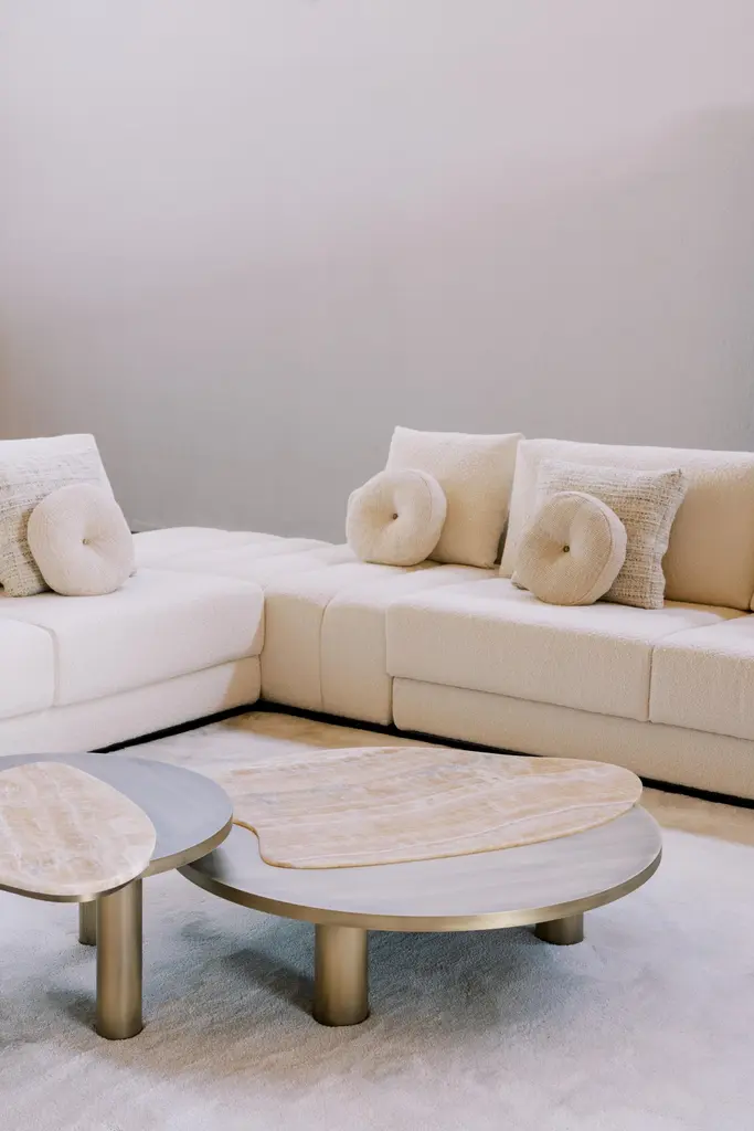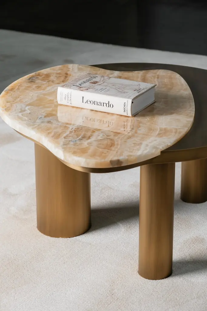 Organic Modern Bordeira Coffee Tables, Onyx Brass, Handmade Portugal Greenapple