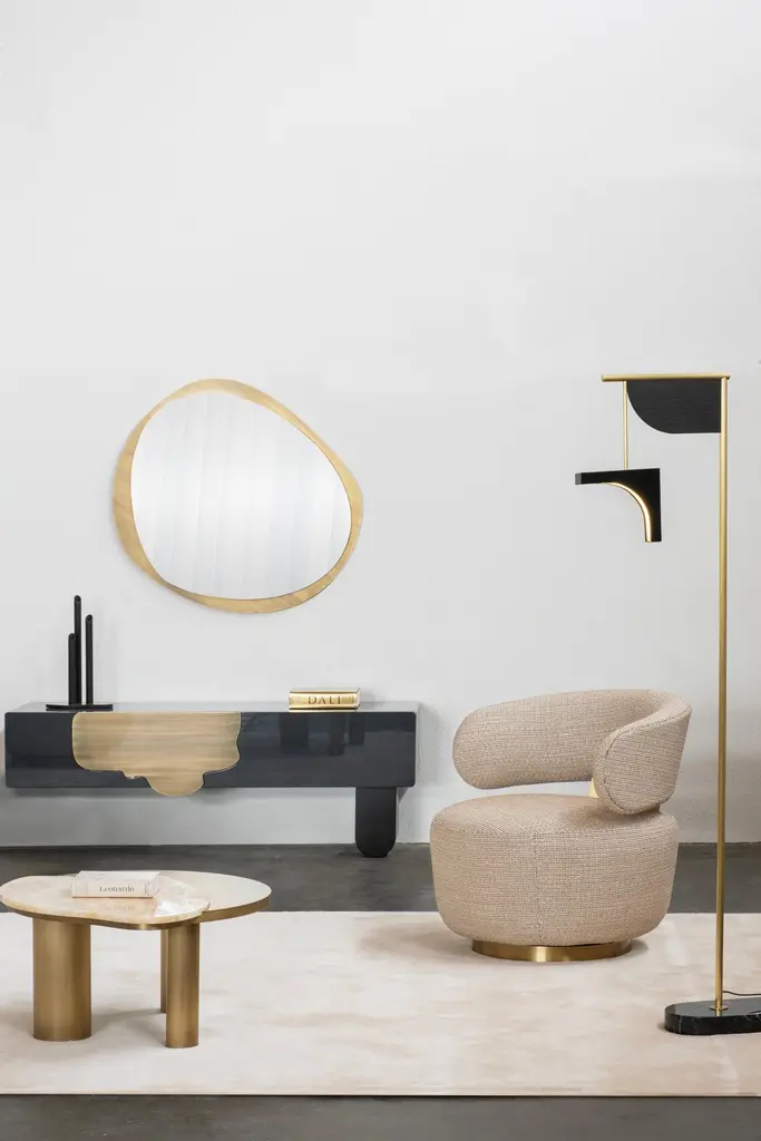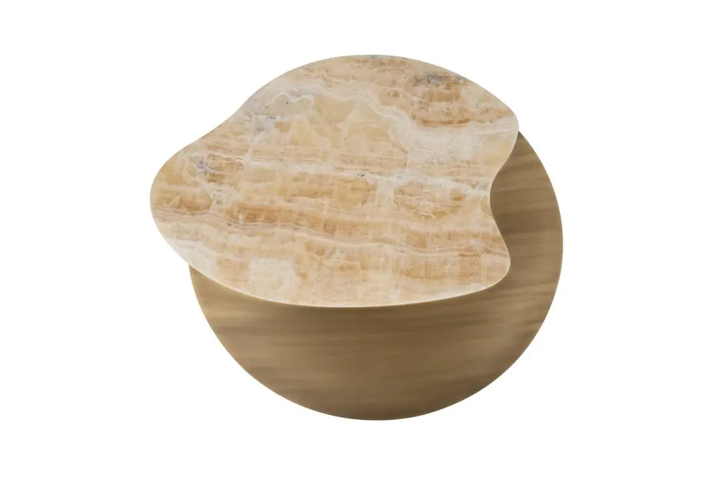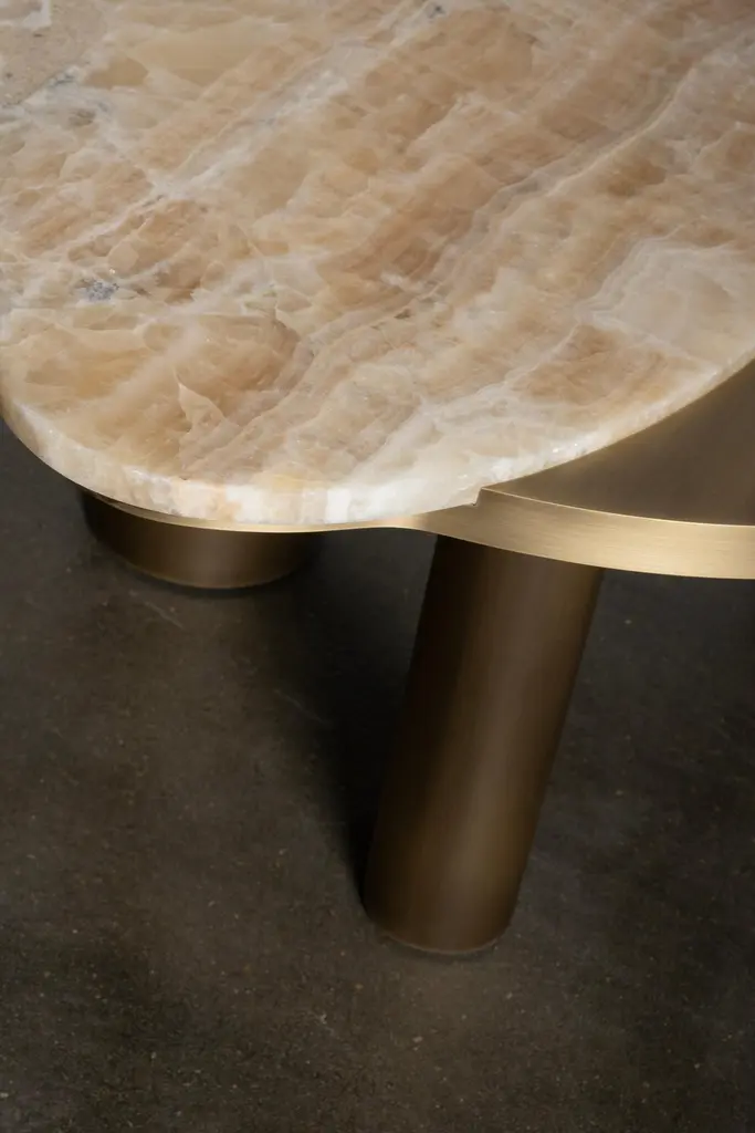 Bordeira coffee table, Contemporary Collection, Handcrafted in Portugal - Europe by Greenapple.Designed by Rute Martins for the Contemporary Collection, the Bordeira modern coffee table was designed to add the essence of nature into the interior space by reimagining the captivating lines of Bordeira beach in a furniture piece. Through the sweeping curves, ocean meets the land in perfect harmony, creating a modern coffee table that conveys true freedom of movement.Bordeira combines fine craftsmanship and noble materials, becoming a Greenapple’s best-seller and a favorite piece among designers.Bordeira coffee table Material CodesME032 Oxidised brass; matt finishST004 Miel Onyx; polishedHandcrafted in Portugal - Europe by GreenappleUnique by design, Crafted by peopleFounded in 2005 by Sérgio Rebola and Rute Martins, Greenapple designs and produces in-house luxury furniture for exclusive customers worldwide.Our own in-house production facility allows us to be obsessed with detail, and gives us the freedom to dedicate ourselves to the most demanding tailor-made and customized work. As Rute designs all the unique pieces, Sérgio assures the high-quality standards through the whole process - from design to production; from production to your home. Fine craftsmanship, whether perfected by experienced hands or state-of-the-art machinery is quintessential in delivering top quality experiences.