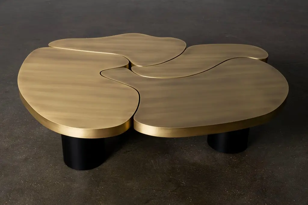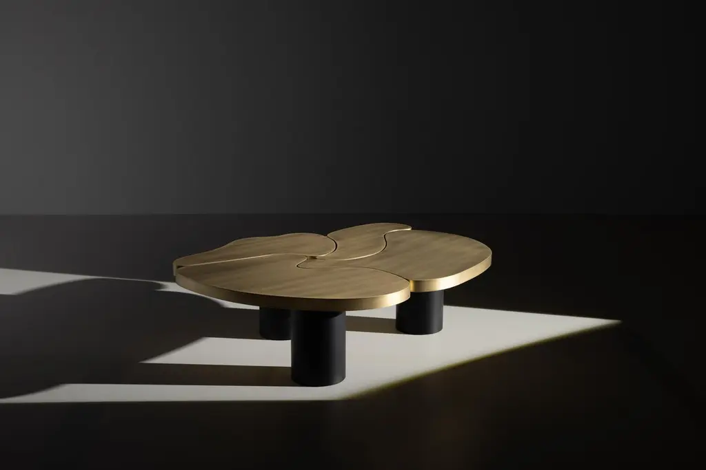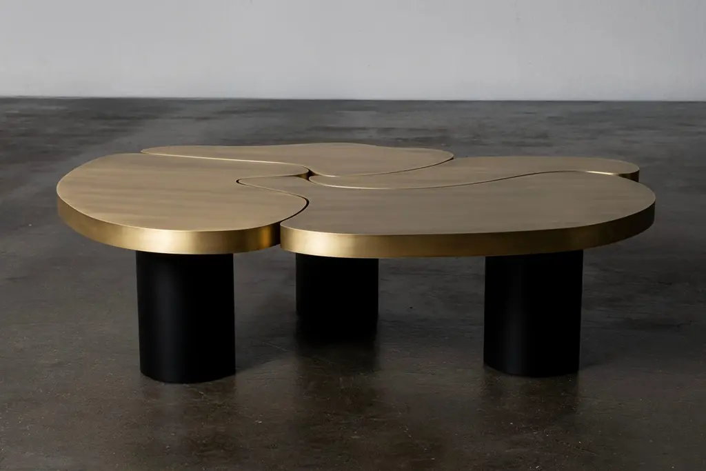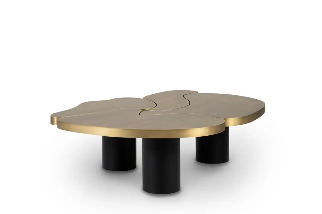 Organic Modern MyBrain Coffee Table, Contemporary Collection, Handcrafted in Portugal - Europe by Greenapple.The My Brain coffee table is a harmonious interplay of forms, designed as an intricate composition where each element seamlessly connects to the next. Like pieces of a puzzle, its sculptural design creates a flowing rhythm, evoking a sense of unity and movement. A bold yet elegant statement, the My Brain coffee table transforms contemporary spaces with its striking presence and refined aesthetic.The My Brain coffee table features a sculptural table top composed of interconnected organic shapes, creating a fluid and dynamic design. The table top is crafted in in brushed and burnished black brass with matte varnish . The piece is supported by three cylindrical legs in solid wood, stained in black with open-pore and a matte varnish. The veneer is anti-fungal and vermin-free, ensuring longevity and preservation.The coffee table MyBrain can be customized in terms of dimensions, materials and finishes.MyBrain Coffee Table Material CodesWD107 American Oak, Stained Open-pore, Varnished, Black, MatteME032 Brass, Brushed, Burnished, Varnished, Antique-Brass, MatteHandcrafted in Portugal - Europe by GreenappleUnique by design, Crafted by peopleGreenapple transforms contemporary spaces into exclusive narratives of design and craftsmanship. From custom-made furniture to bespoke interiors, each creation is a timeless work of art, shaped by master artisans who honor centuries-old techniques.Founded in 2005 by Sérgio Rebola and Rute Martins, Greenapple has earned global recognition among high-end clientele and leading design firms. While Rute designs each unique piece, Sérgio ensures uncompromising quality from design to production and from production to your home. We provide a seamless experience, offering short production lead times, worldwide delivery within 7 to 10 days, and white-glove service upon request.For U.S. clients, we can handle all customs clearance, cover duties, and offer white-glove service as well upon request.Cocktail Table, Center Table, Centre Table, Low Table, Tea Table
