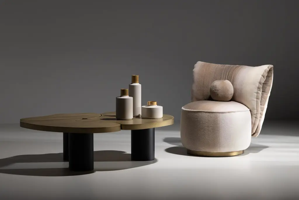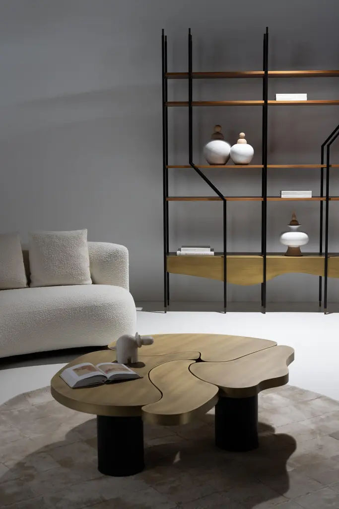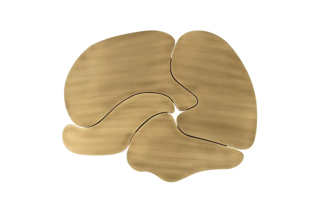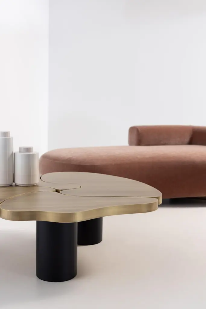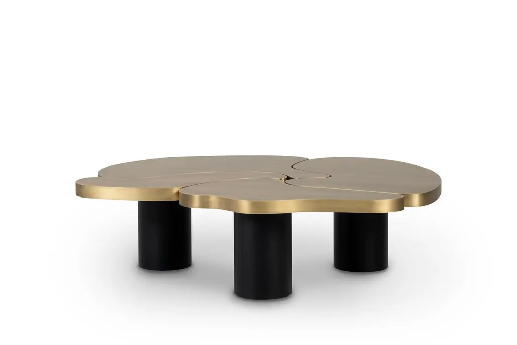 Organic Modern MyBrain Coffee Table, Contemporary Collection, Handcrafted in Portugal - Europe by Greenapple.The My Brain coffee table is a harmonious interplay of forms, designed as an intricate composition where each element seamlessly connects to the next. Like pieces of a puzzle, its sculptural design creates a flowing rhythm, evoking a sense of unity and movement. A bold yet elegant statement, the My Brain coffee table transforms contemporary spaces with its striking presence and refined aesthetic.The My Brain coffee table features a sculptural table top composed of interconnected organic shapes, creating a fluid and dynamic design. The table top is crafted in in brushed and burnished black brass with matte varnish . The piece is supported by three cylindrical legs in solid wood, stained in black with open-pore and a matte varnish. The veneer is anti-fungal and vermin-free, ensuring longevity and preservation.The coffee table MyBrain can be customized in terms of dimensions, materials and finishes.MyBrain Coffee Table Material CodesWD107 American Oak, Stained Open-pore, Varnished, Black, MatteME032 Brass, Brushed, Burnished, Varnished, Antique-Brass, MatteHandcrafted in Portugal - Europe by GreenappleUnique by design, Crafted by peopleGreenapple transforms contemporary spaces into exclusive narratives of design and craftsmanship. From custom-made furniture to bespoke interiors, each creation is a timeless work of art, shaped by master artisans who honor centuries-old techniques.Founded in 2005 by Sérgio Rebola and Rute Martins, Greenapple has earned global recognition among high-end clientele and leading design firms. While Rute designs each unique piece, Sérgio ensures uncompromising quality from design to production and from production to your home. We provide a seamless experience, offering short production lead times, worldwide delivery within 7 to 10 days, and white-glove service upon request.For U.S. clients, we can handle all customs clearance, cover duties, and offer white-glove service as well upon request.Cocktail Table, Center Table, Centre Table, Low Table, Tea Table